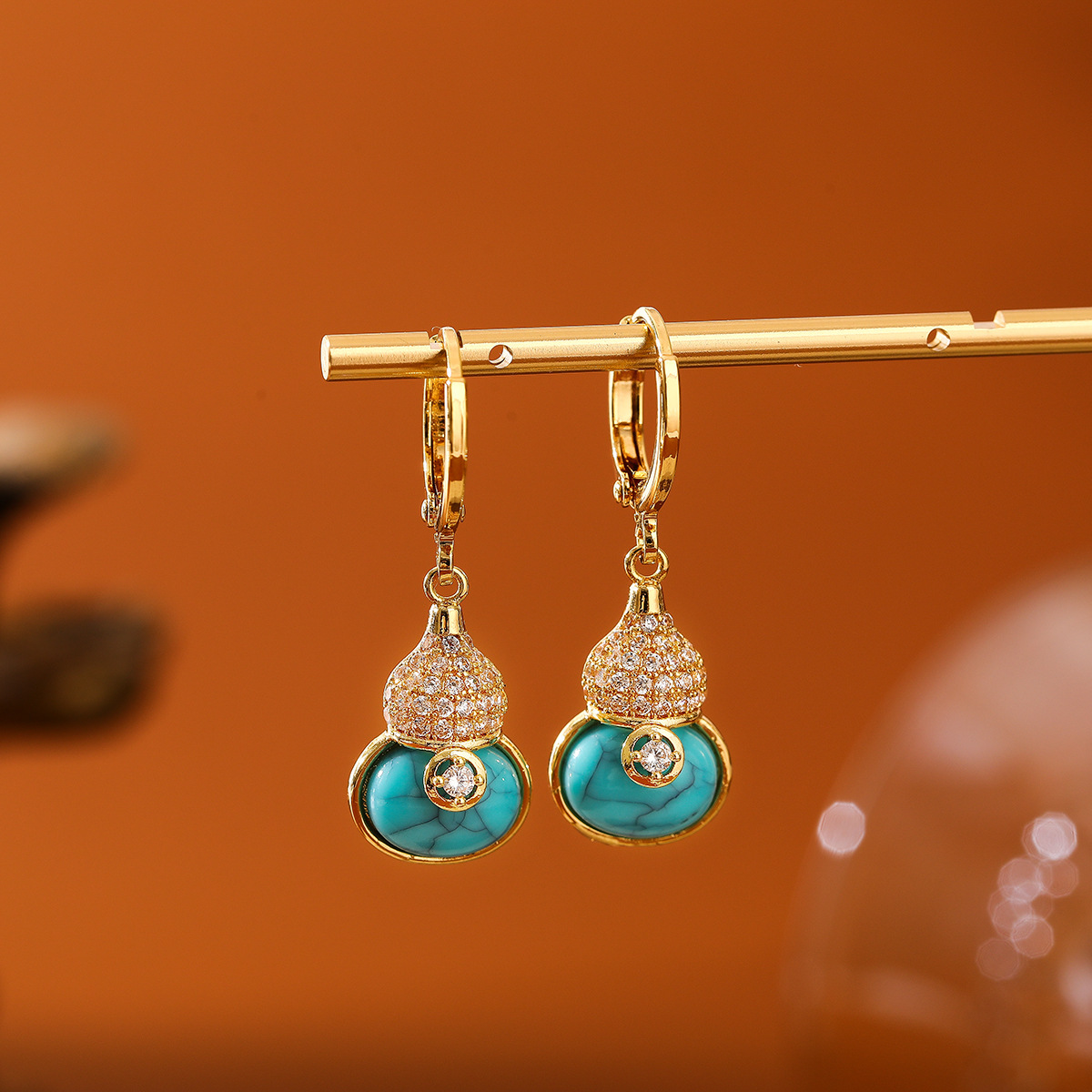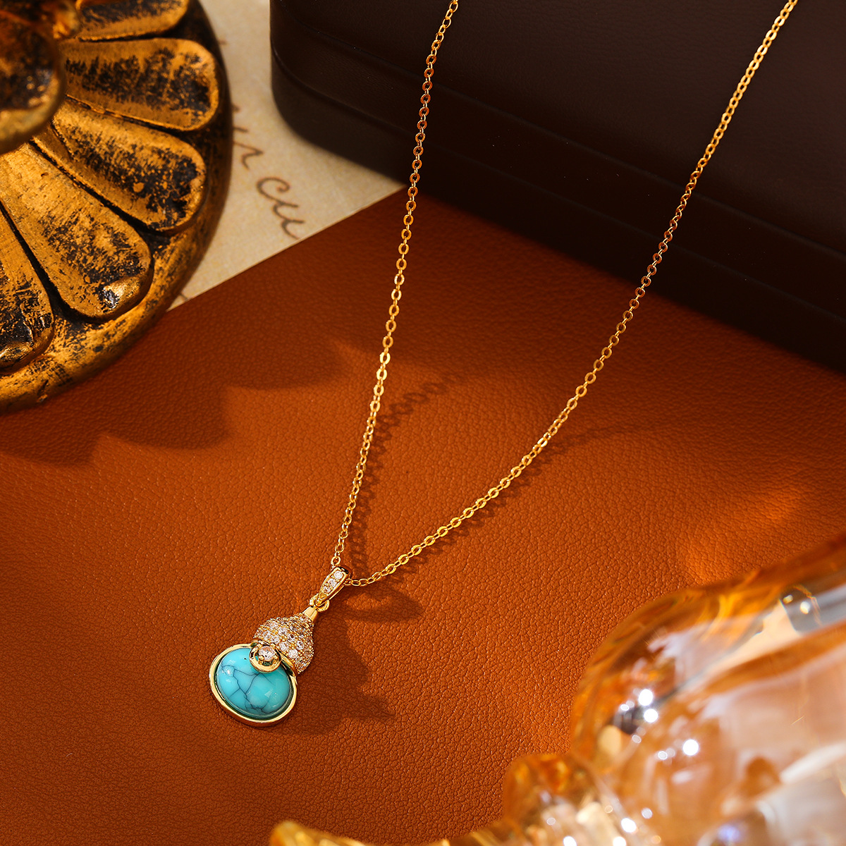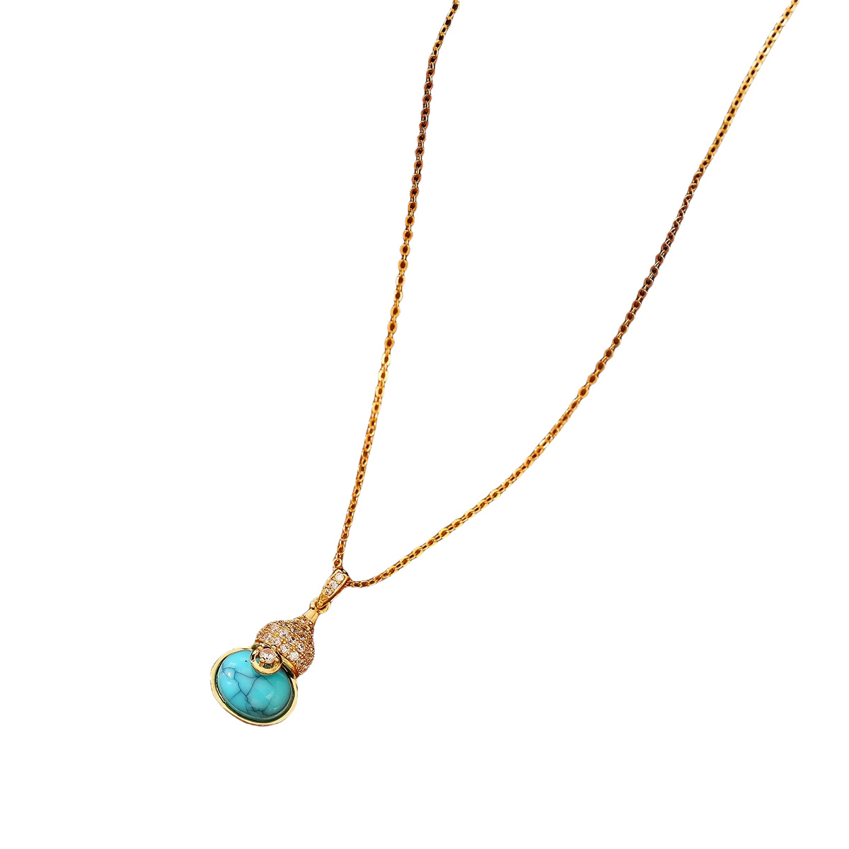 【暮色四合】湖蓝色小葫芦项链吊坠耳扣套装