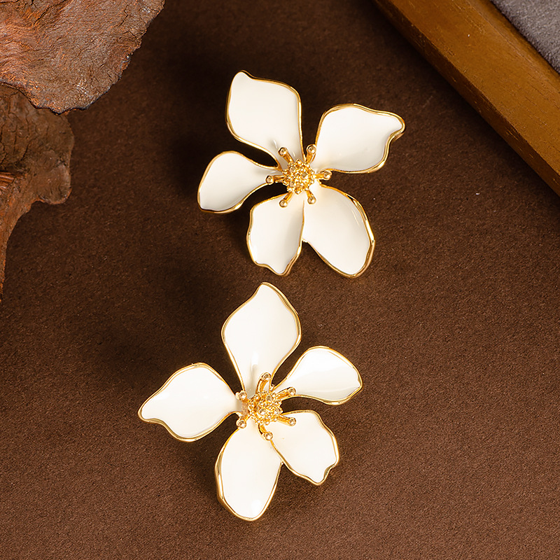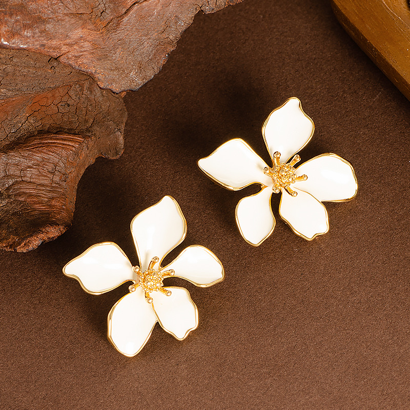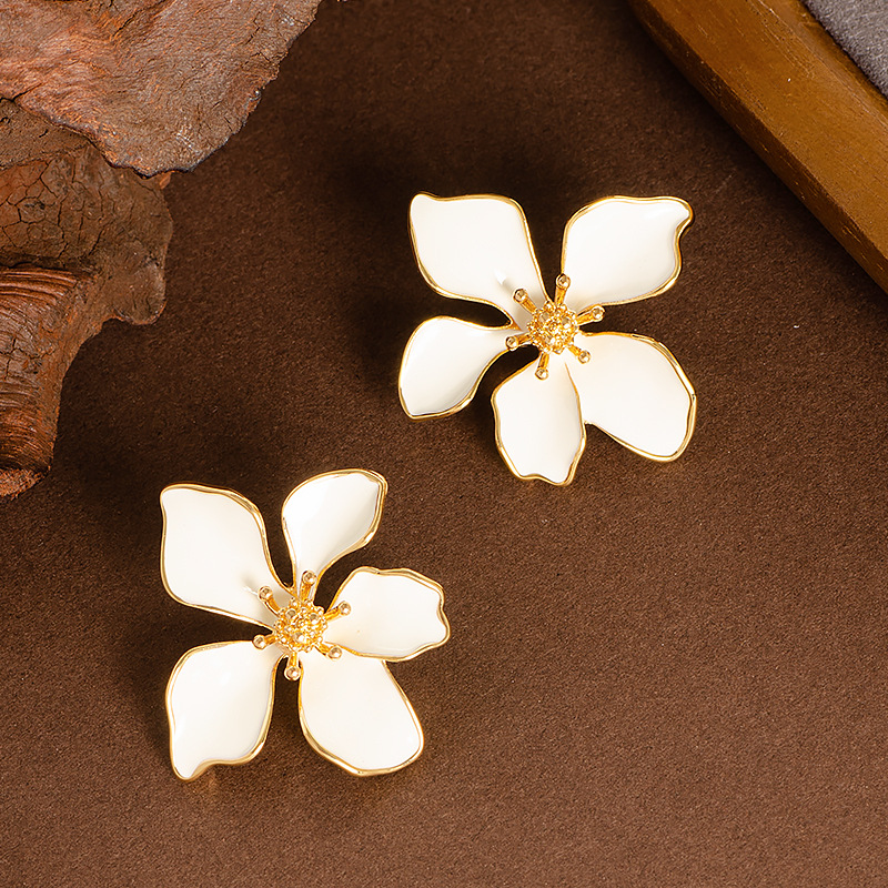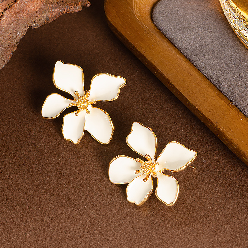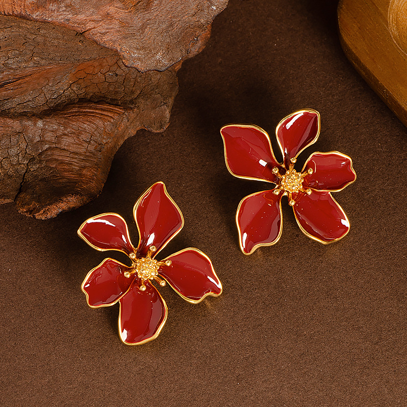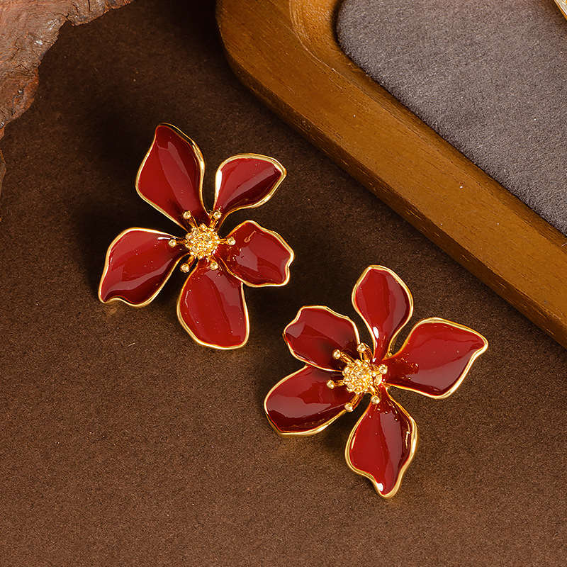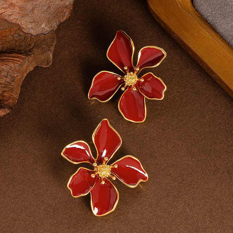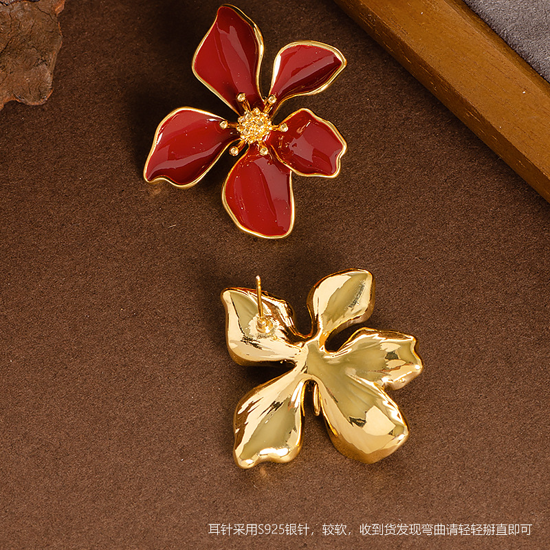五葉花滴油花朵耳釘女氣質個性高級感銀針耳飾