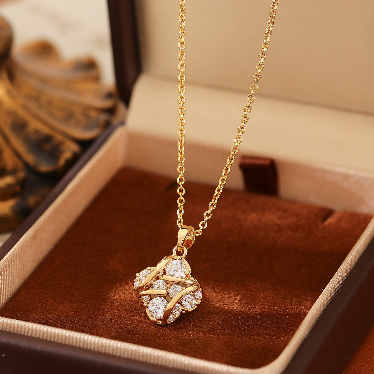 四叶草微锆石吊坠项链时尚通勤精致小巧耳饰个性锁骨链饰品