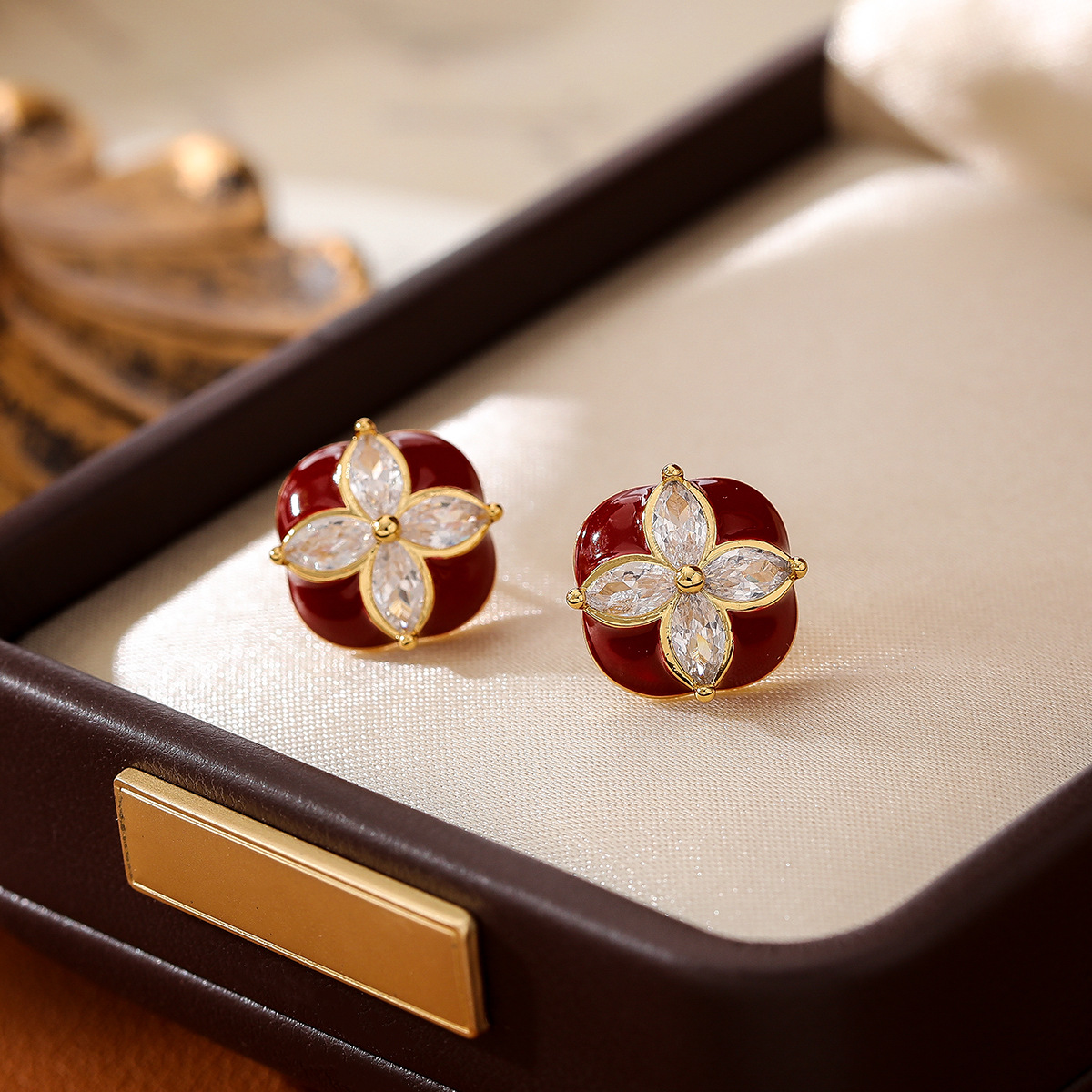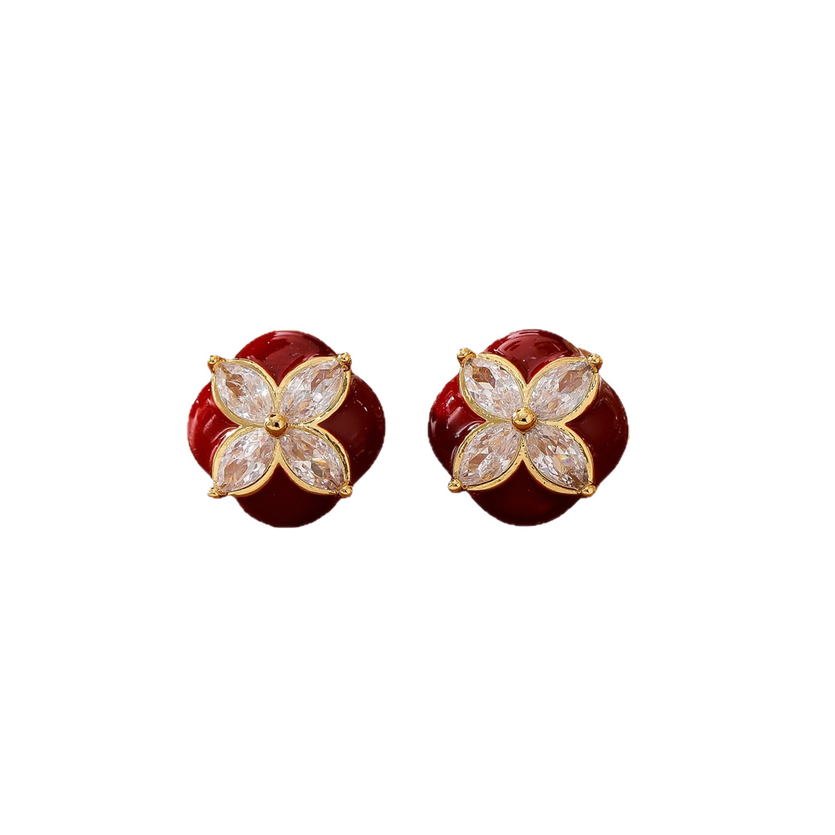 复古美拉德滴油锆石四叶草耳钉|时尚百搭高级感耳饰