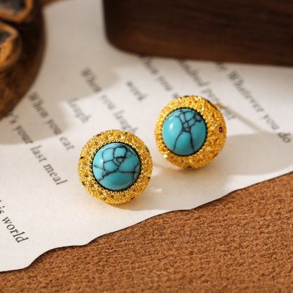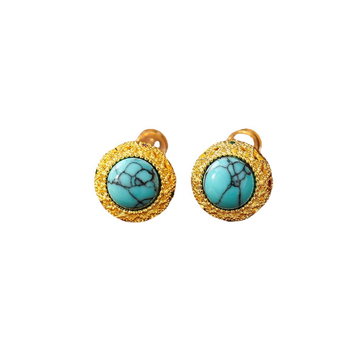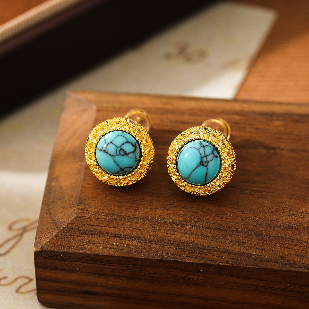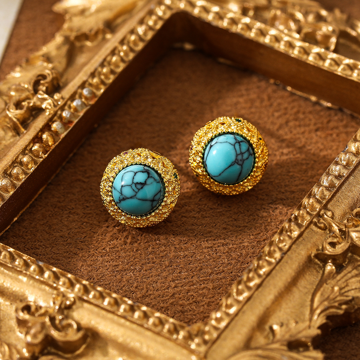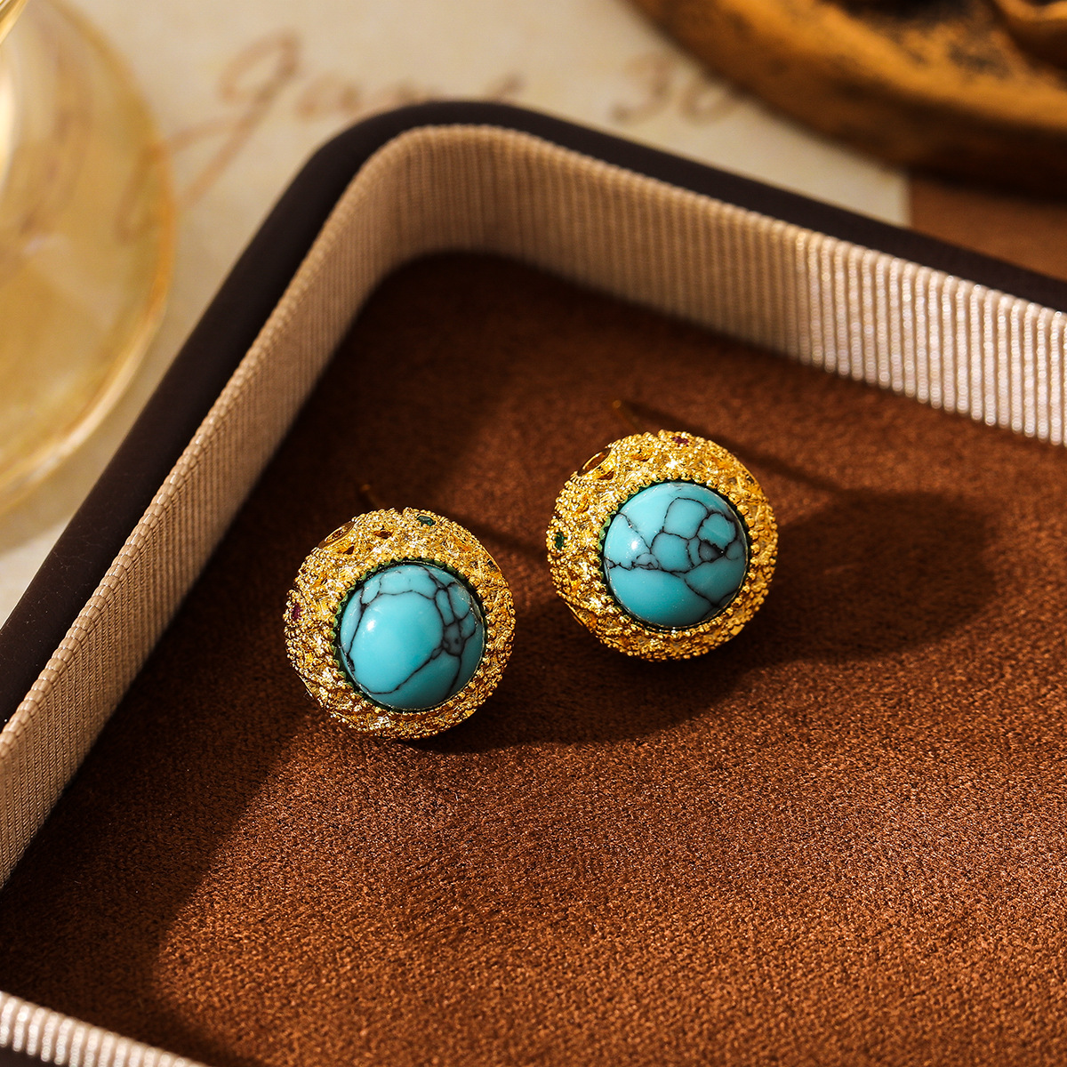 天然绿松石耳钉|新中式复古耳饰|轻奢小众S925银针耳环
