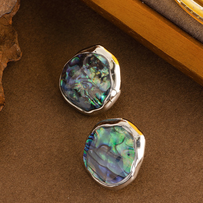 天然鮑魚貝貝殼耳釘耳環小衆輕奢時髦高級感銀針耳飾