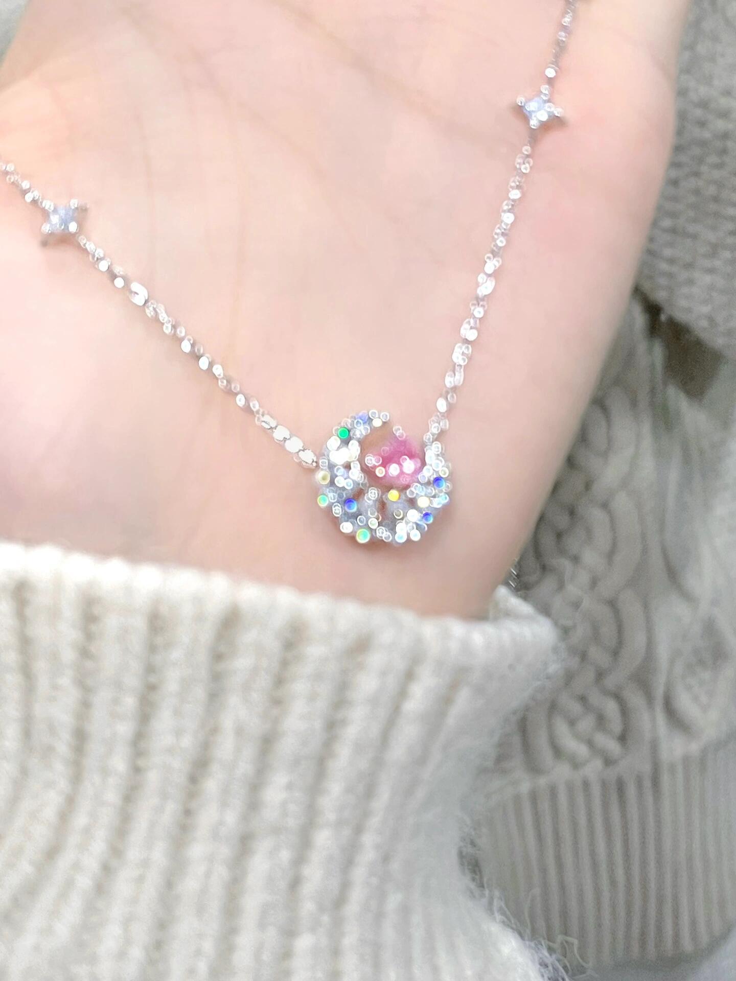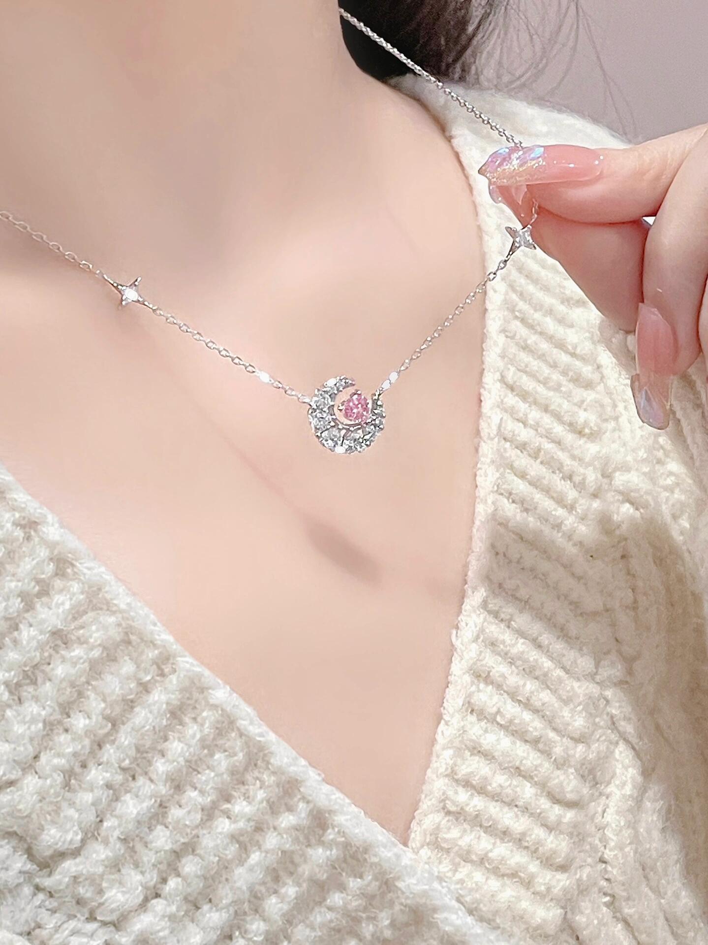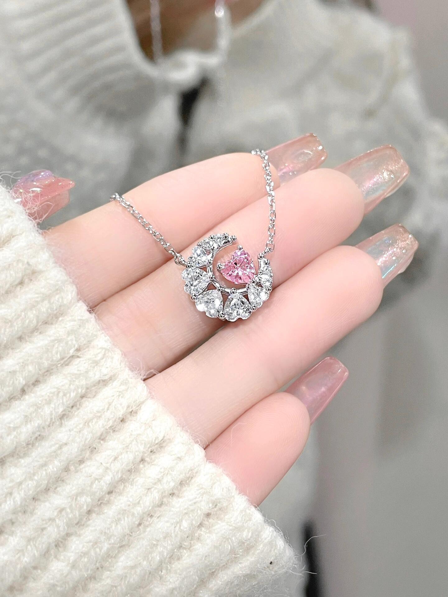 幻夢心月項鍊|愛心粉鑽星月鎖骨鏈|