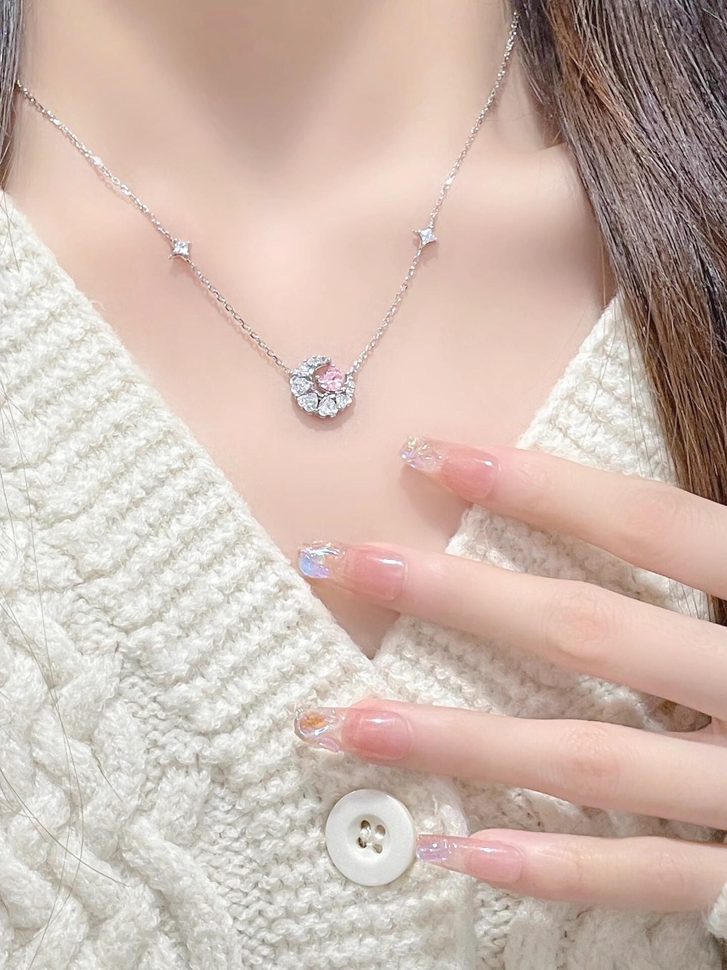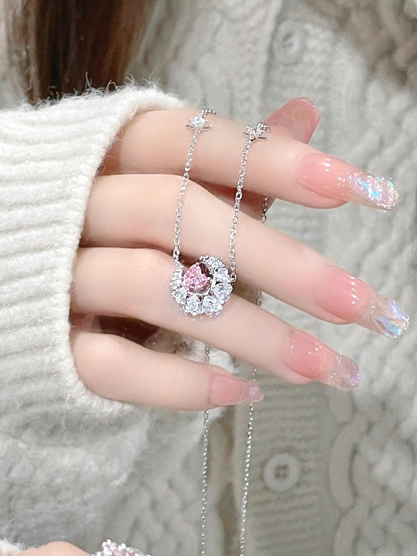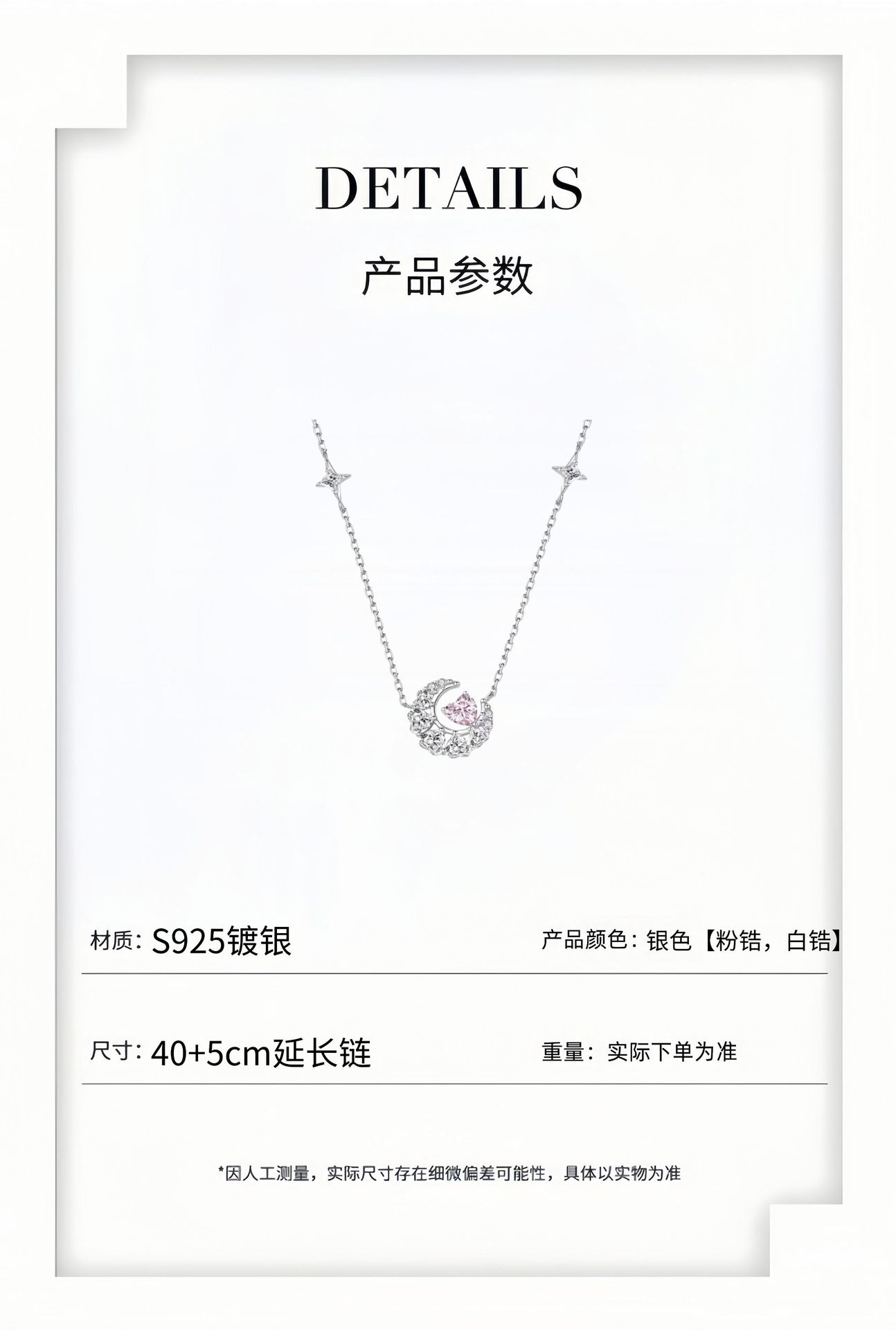 幻夢心月項鍊|愛心粉鑽星月鎖骨鏈|