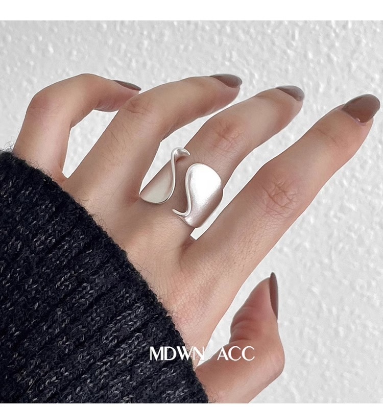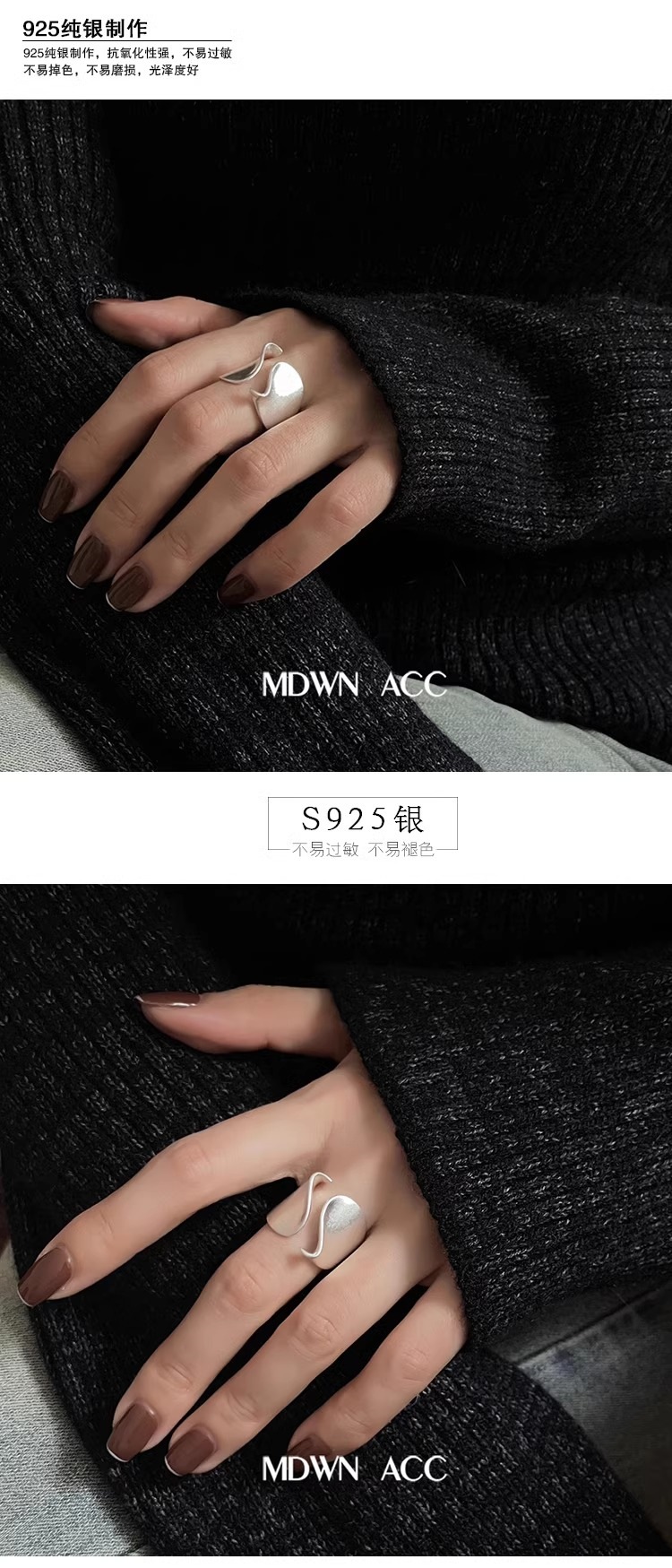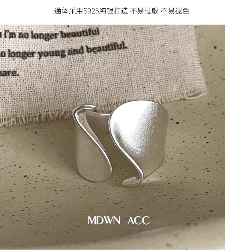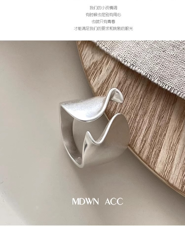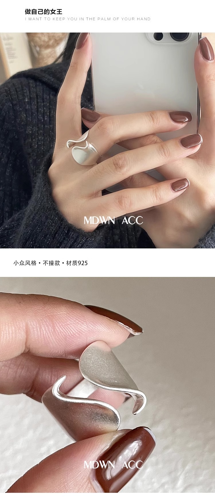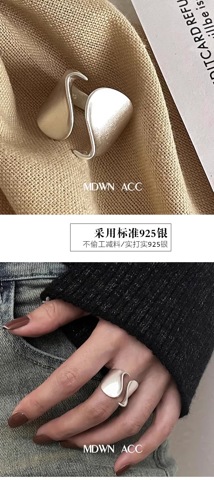 幾何曲面戒指女輕奢寬邊不規則S925純銀小衆開口指環個性食指戒潮