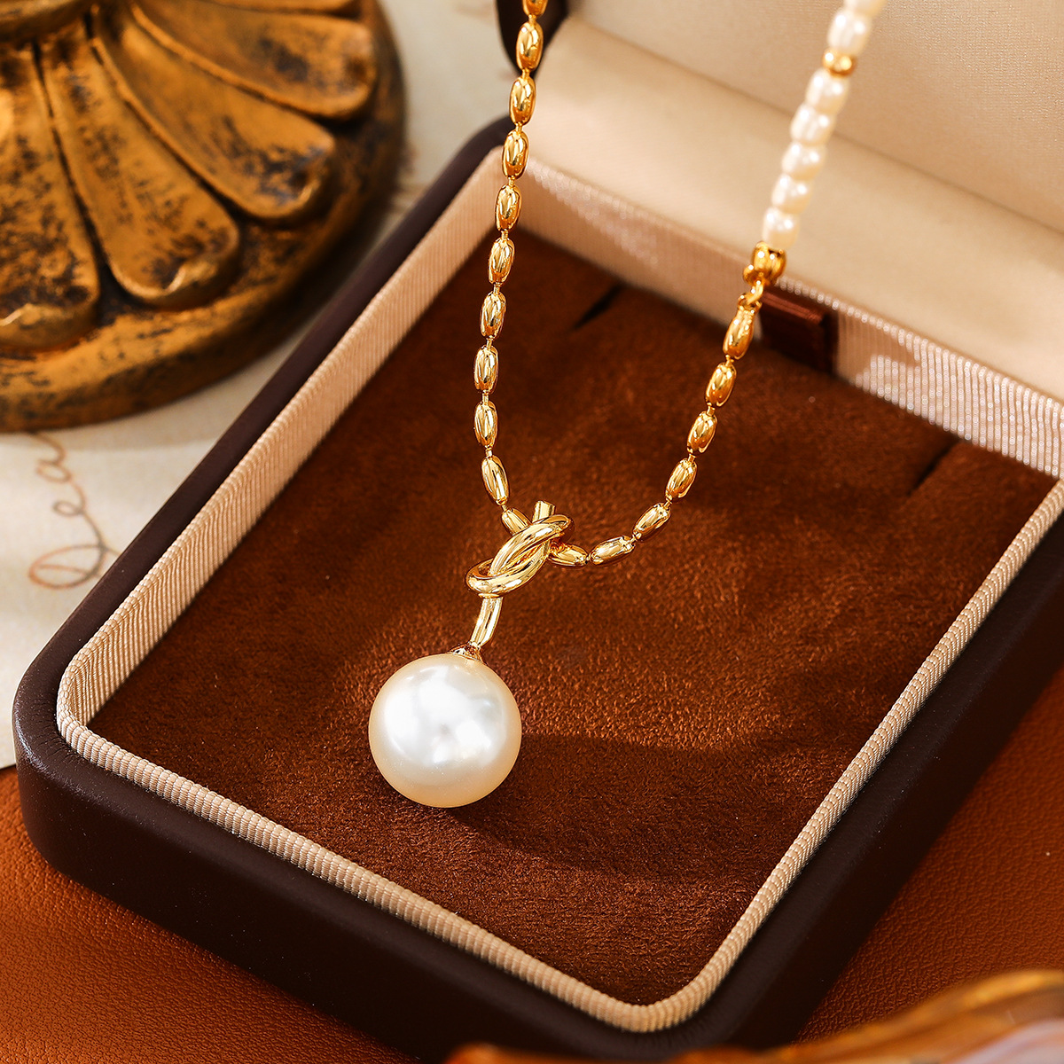 拼接不规则珍珠项链|女气质时髦小众简约百搭耳环女