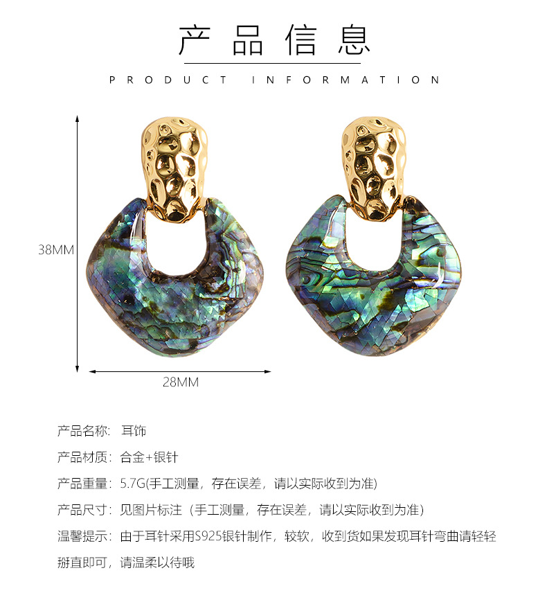 此款耳飾鑲嵌的是天然鮑魚貝殼,而非人工染色貝殼,由於其天然的特殊性,所以花紋色澤每個批次略有不同,請知悉哦