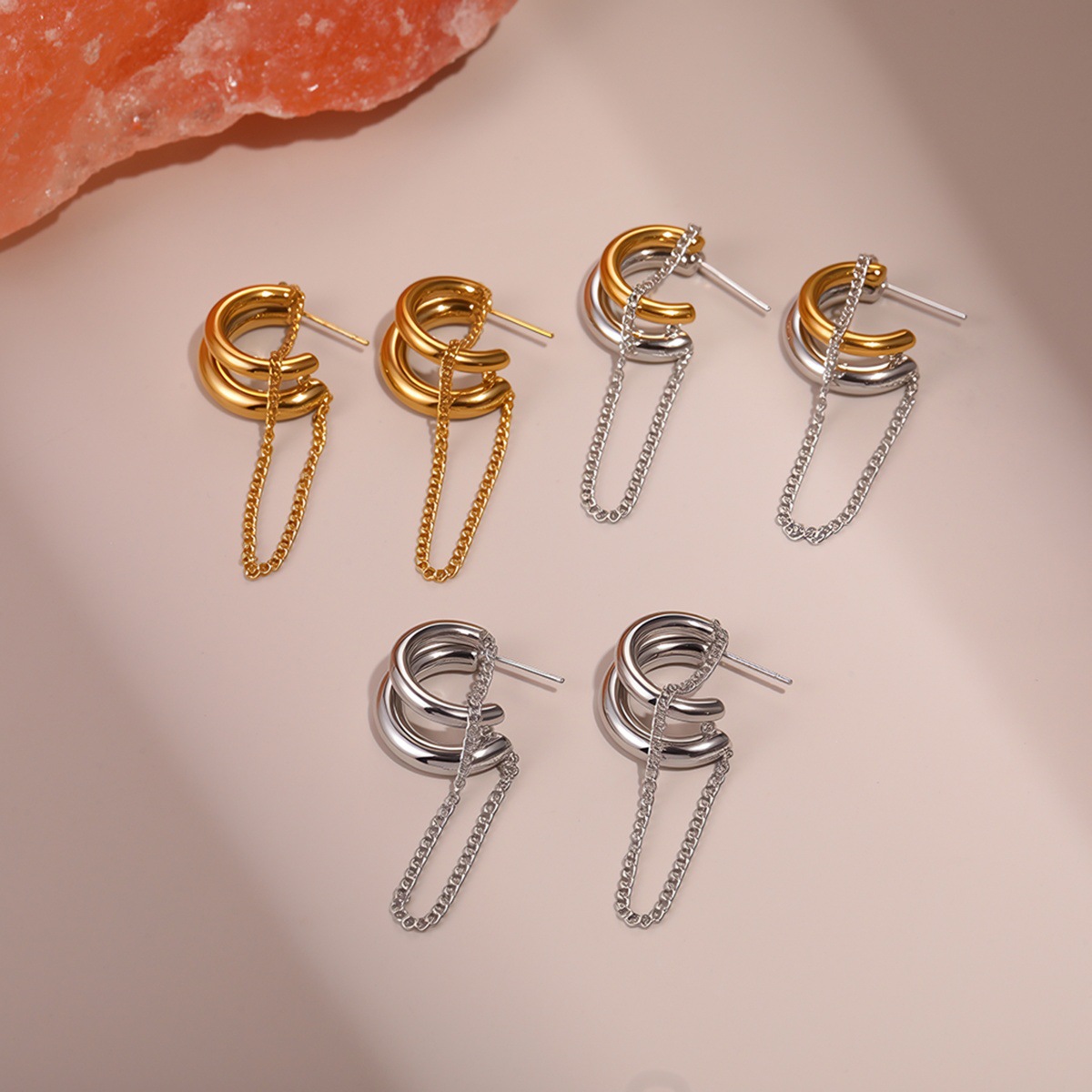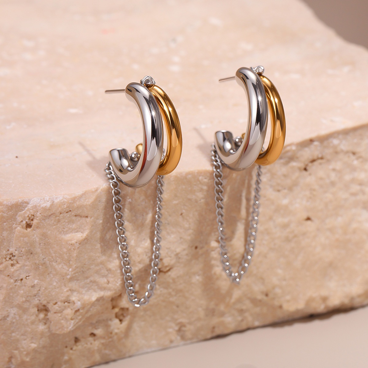 欧美时尚个性流蘇不鏽鋼耳环镀金設計感小眾耳飾品