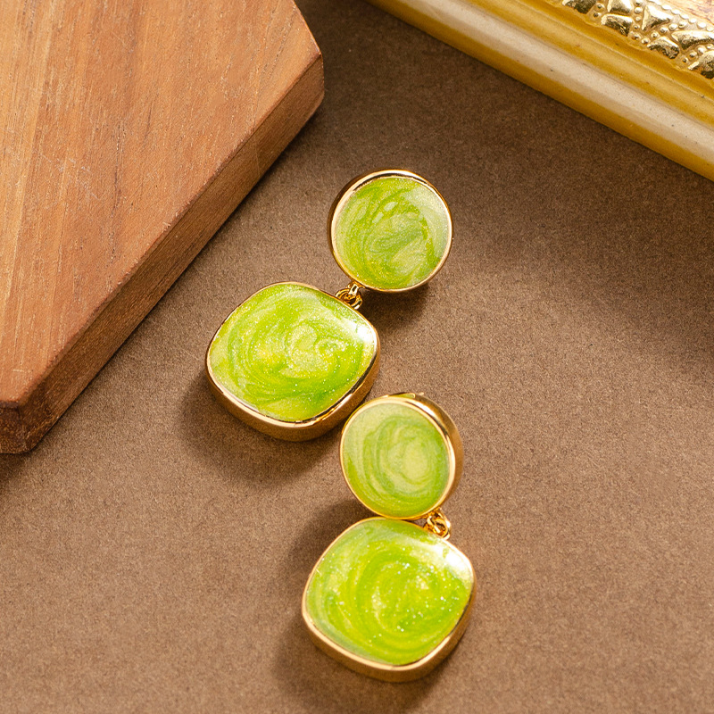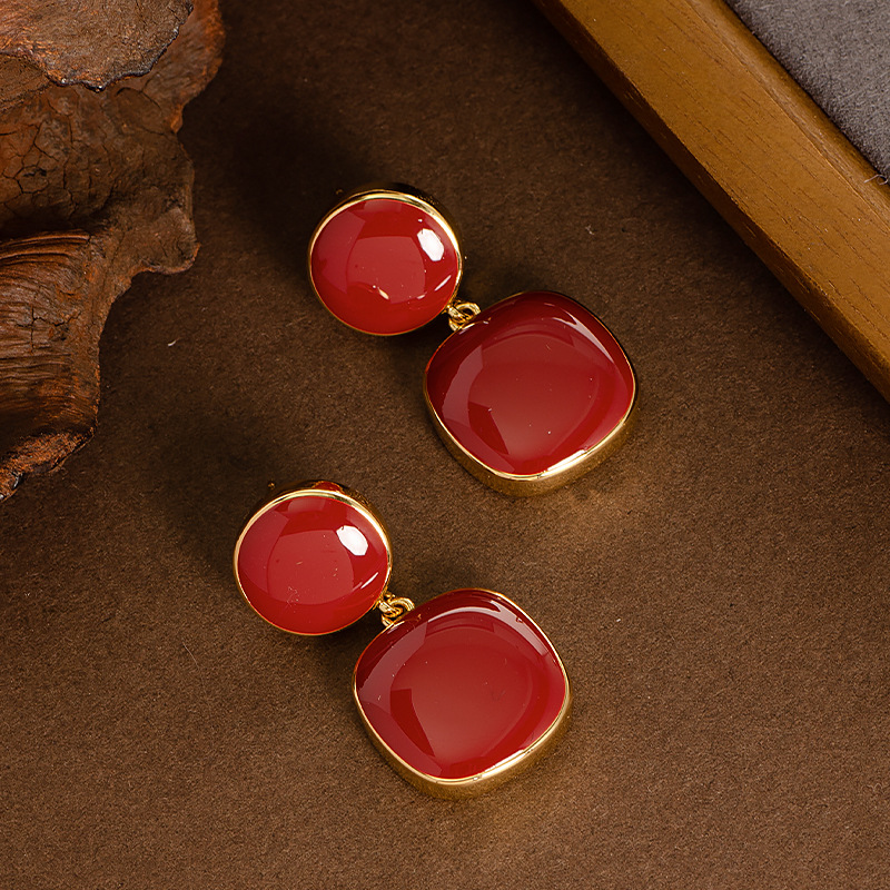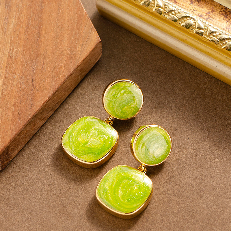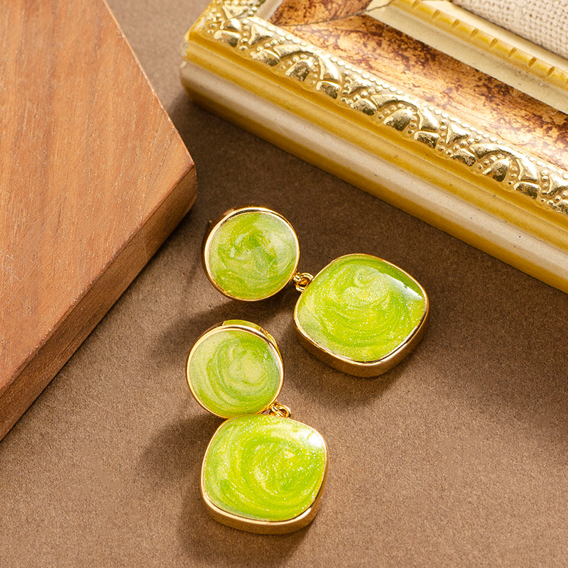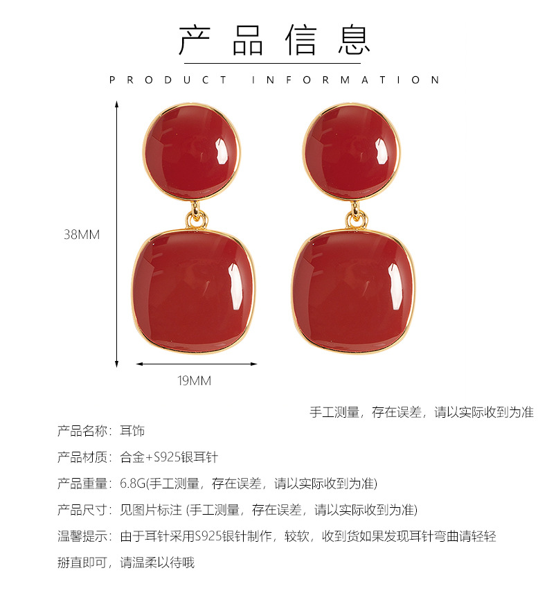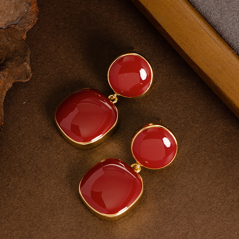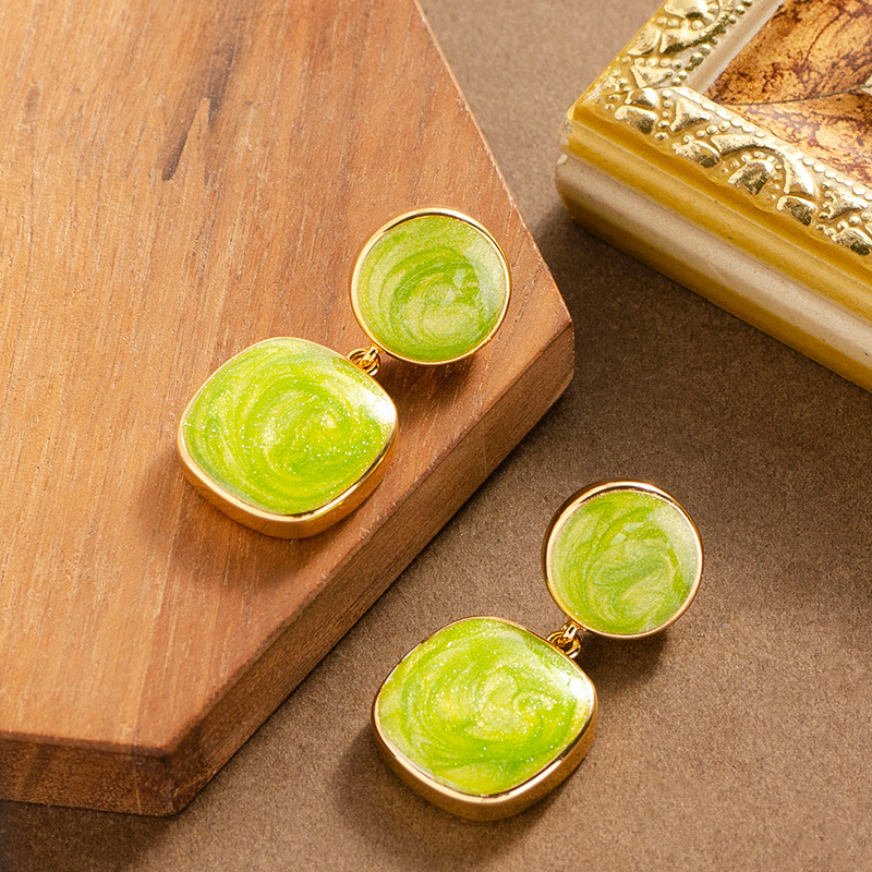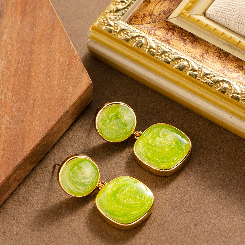 法式優雅復古小香風滴釉幾何耳環女高級感百搭氣質小清新銀針耳飾