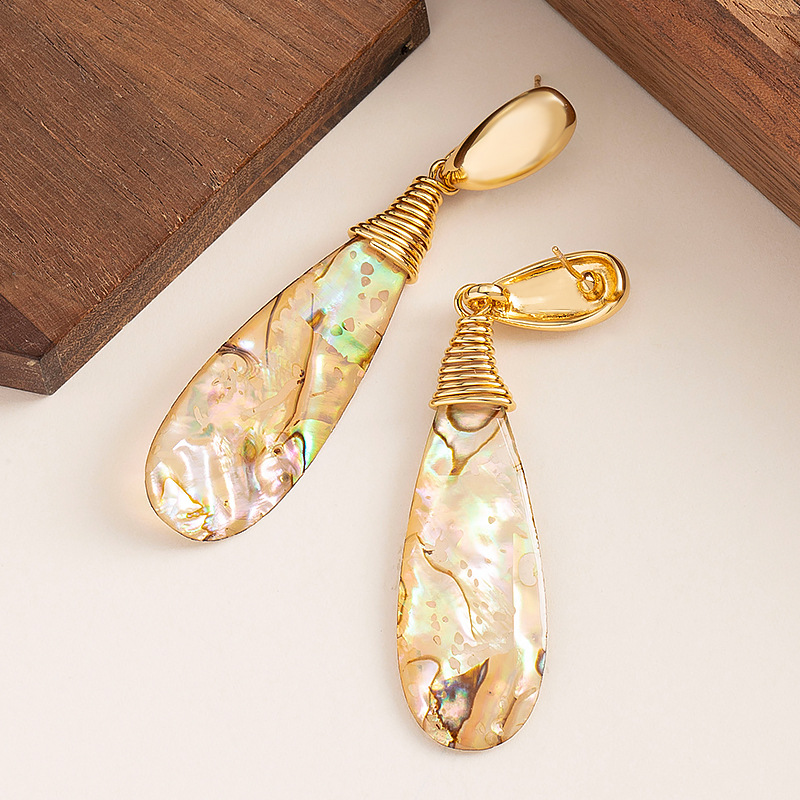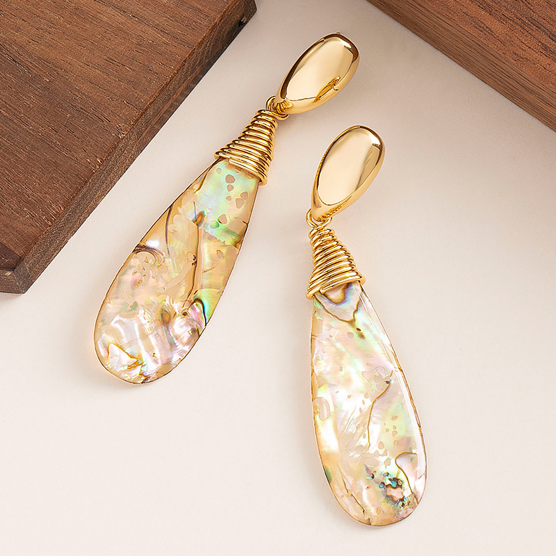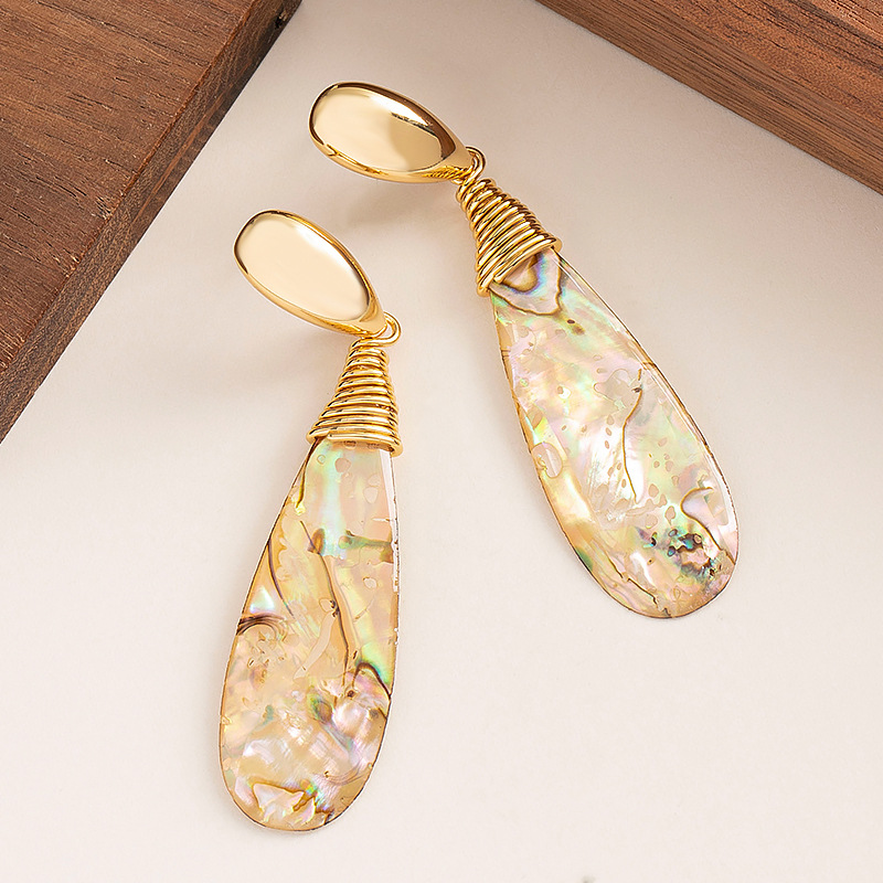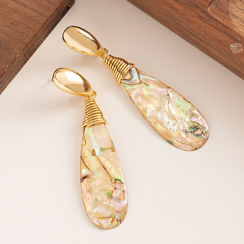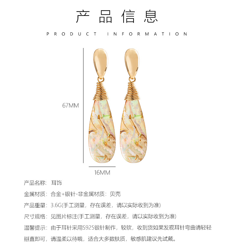 法式優雅精緻小香風長款水滴鮑魚貝流蘇耳環高級感顯臉瘦銀針耳飾