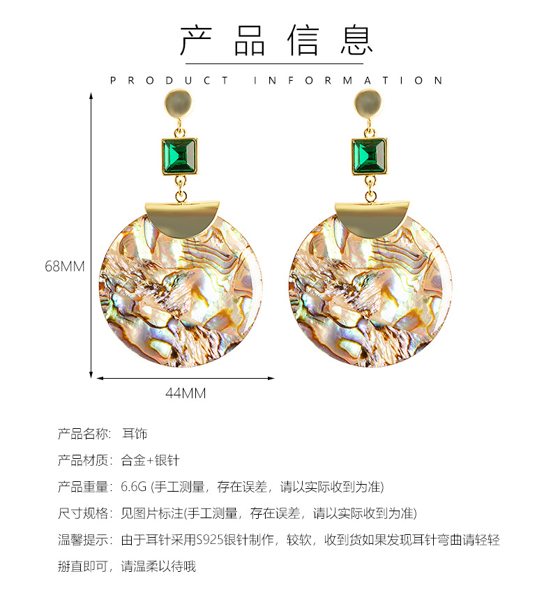 此款耳飾鑲嵌的是天然鮑魚貝殼,而非人工染色貝殼,由於其天然的特殊性,所以花紋色澤每個批次略有不同,請知悉哦