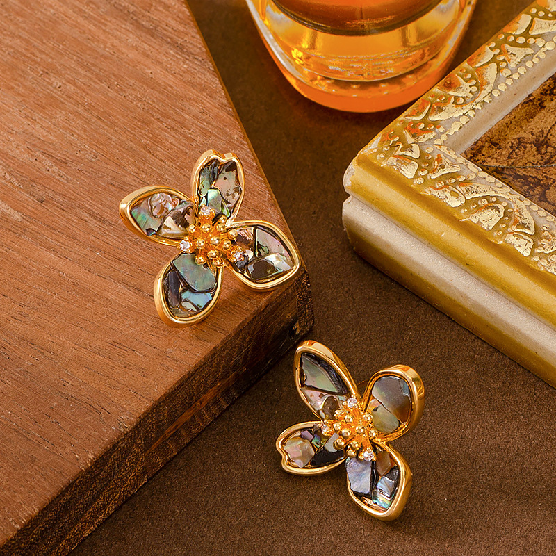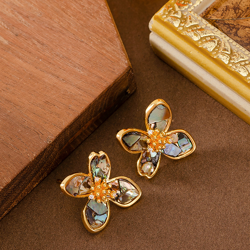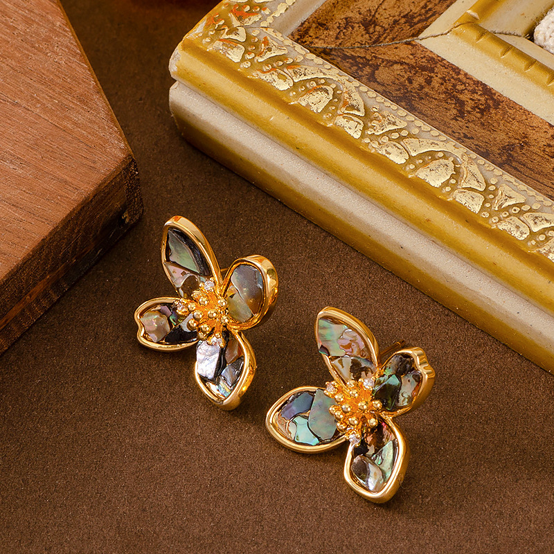 溫柔氣質小香風彩貝碎貝鮑魚貝耳釘耳環女輕奢高級感銀針耳飾