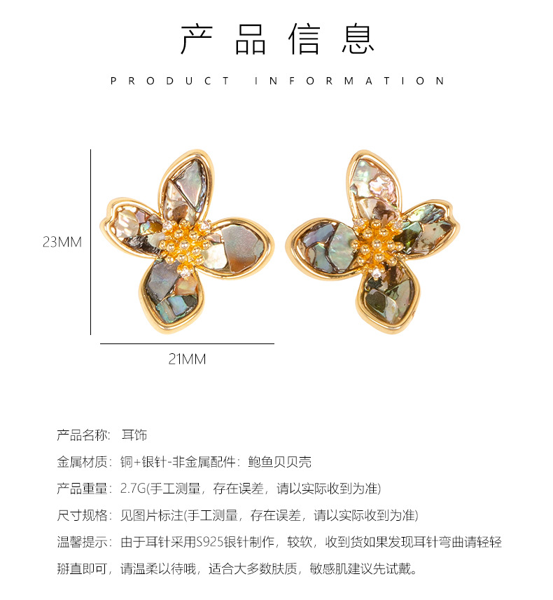 本款耳飾採用天然鮑魚貝碎貝殼製作,獨特設計與衆不同