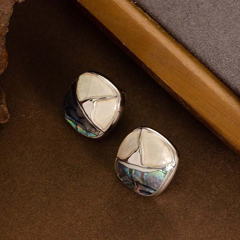美拉德撞色幾何鮑魚貝滴釉耳釘耳環女高級感銀針耳飾