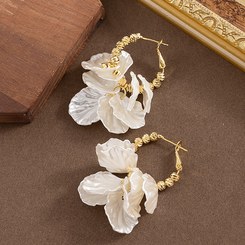 超仙時尚精緻仙女風仿貝殼花朵流蘇耳環輕奢高級感顯臉瘦銀針耳飾