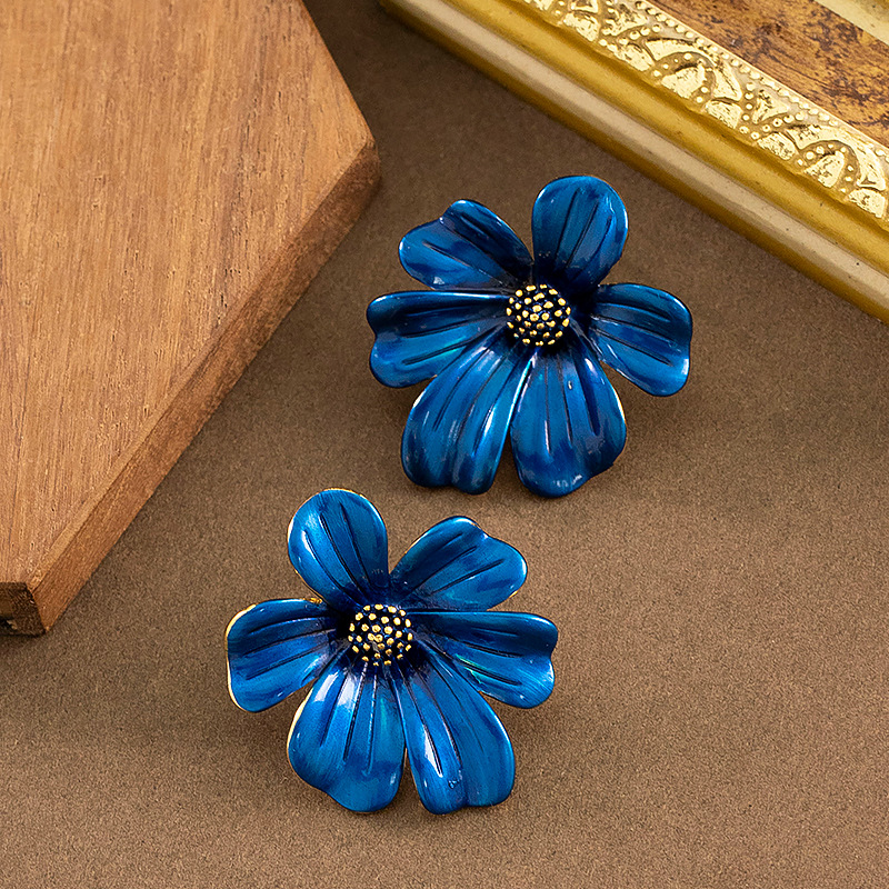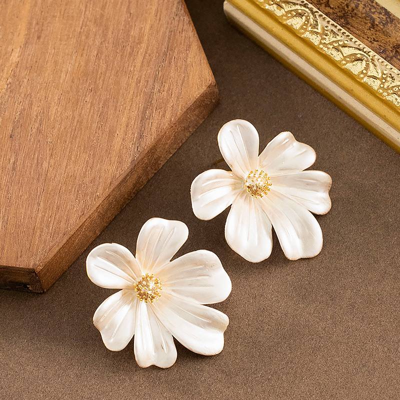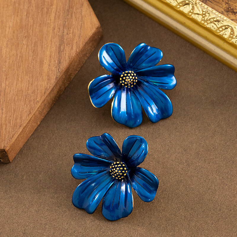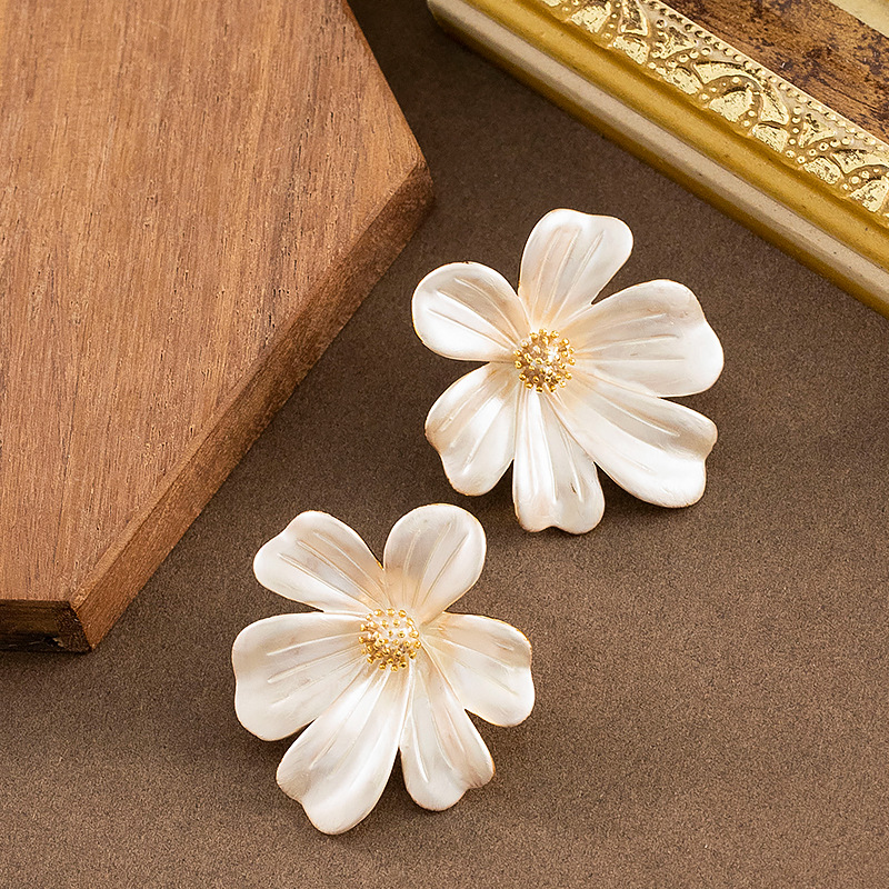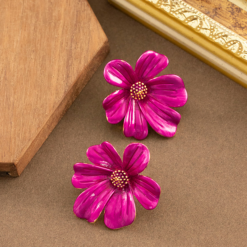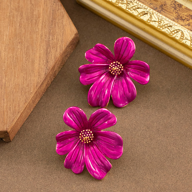 超仙甜美精緻仙女風烤漆立體花朵耳釘耳環溫柔氣質高級感銀針耳飾