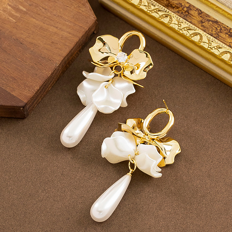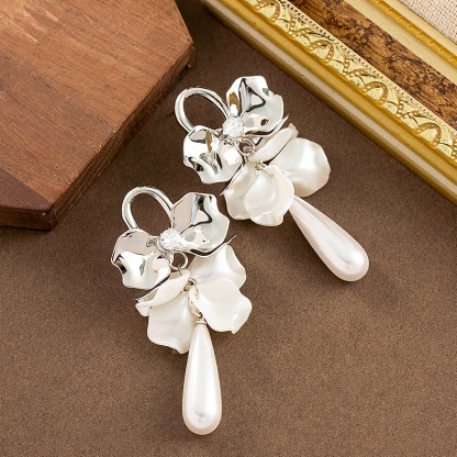 銀針超仙立體仿貝殼花朵珍珠流蘇耳環輕奢高級感長款顯臉瘦耳飾女