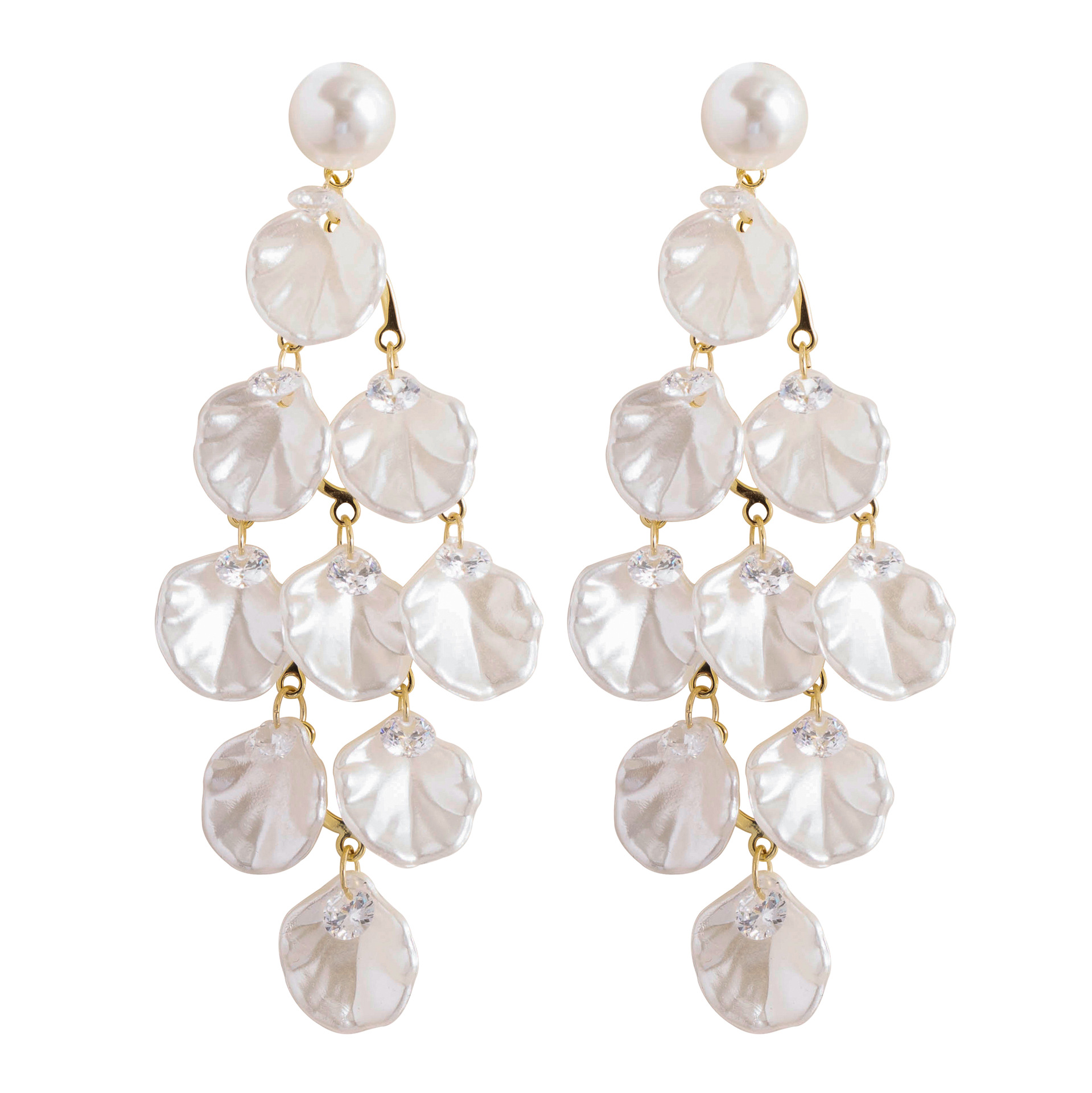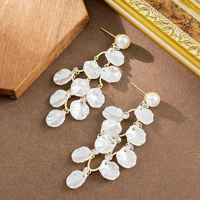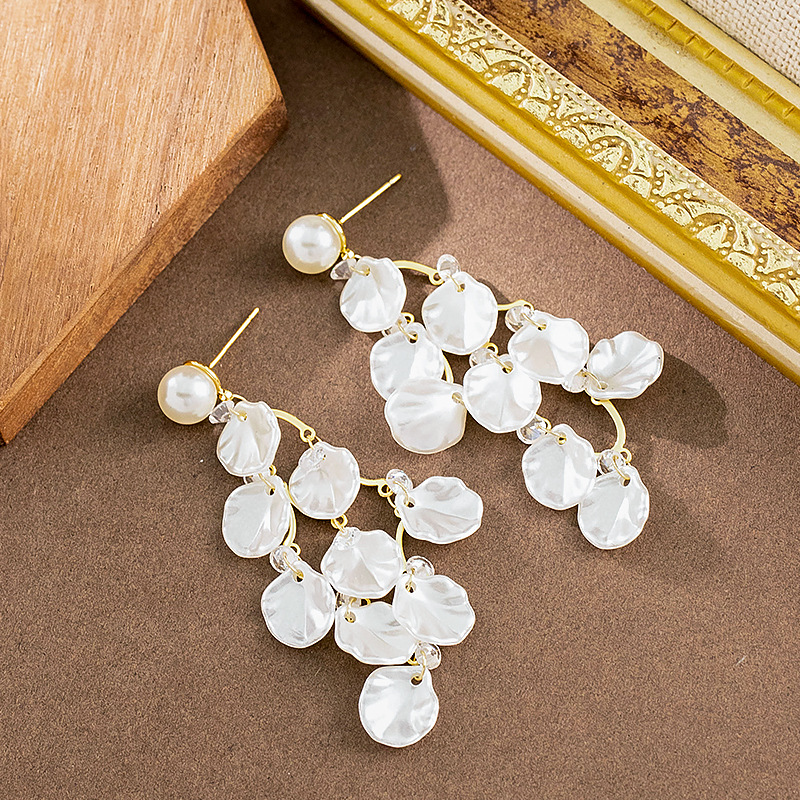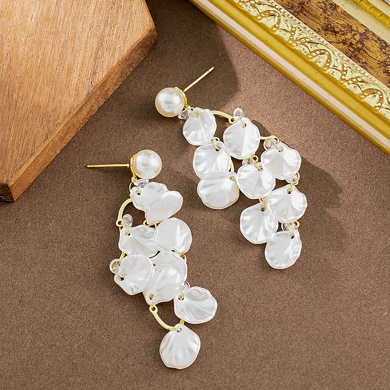 韓版超仙精緻亮片仿貝殼珍珠流蘇耳環高級感方圓臉顯瘦銀針耳飾女