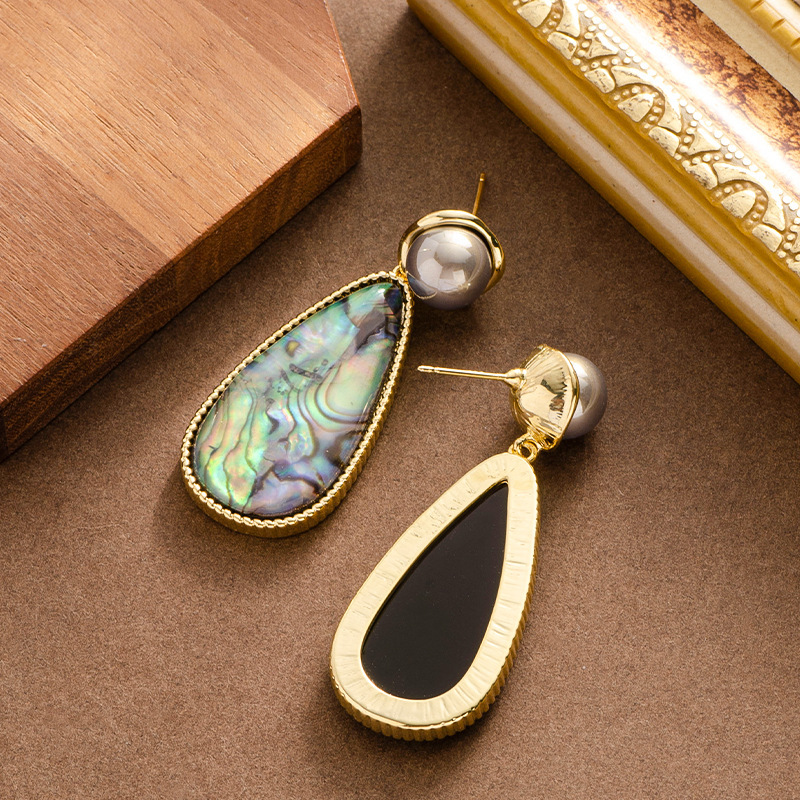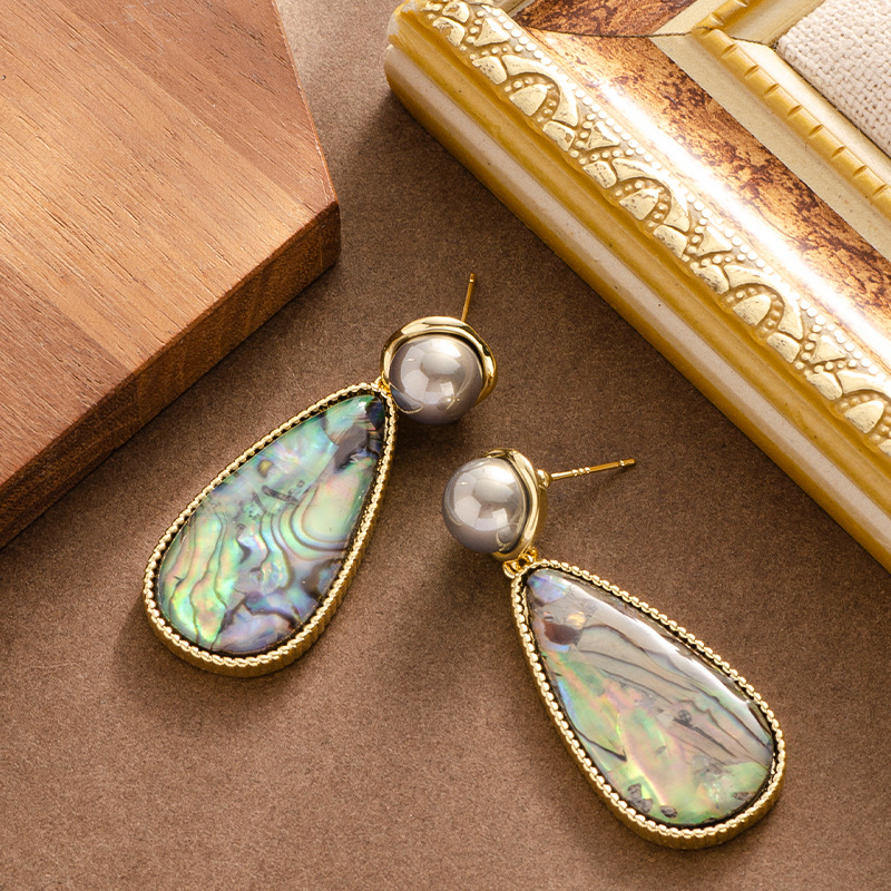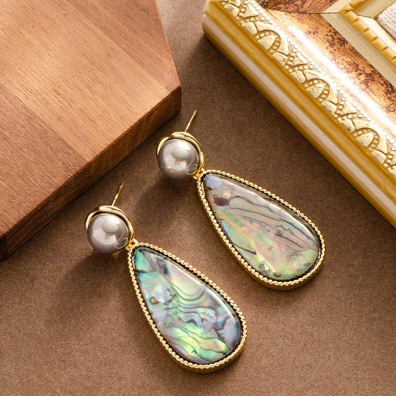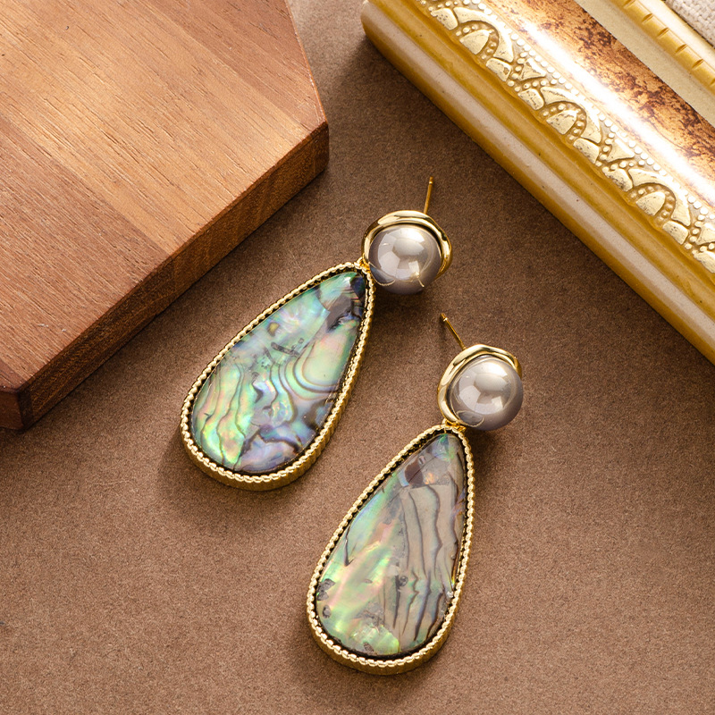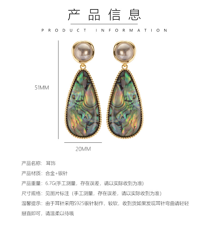 鮑魚貝天然彩貝大水滴吊墜珍珠耳環輕奢精緻高級感銀針耳飾
