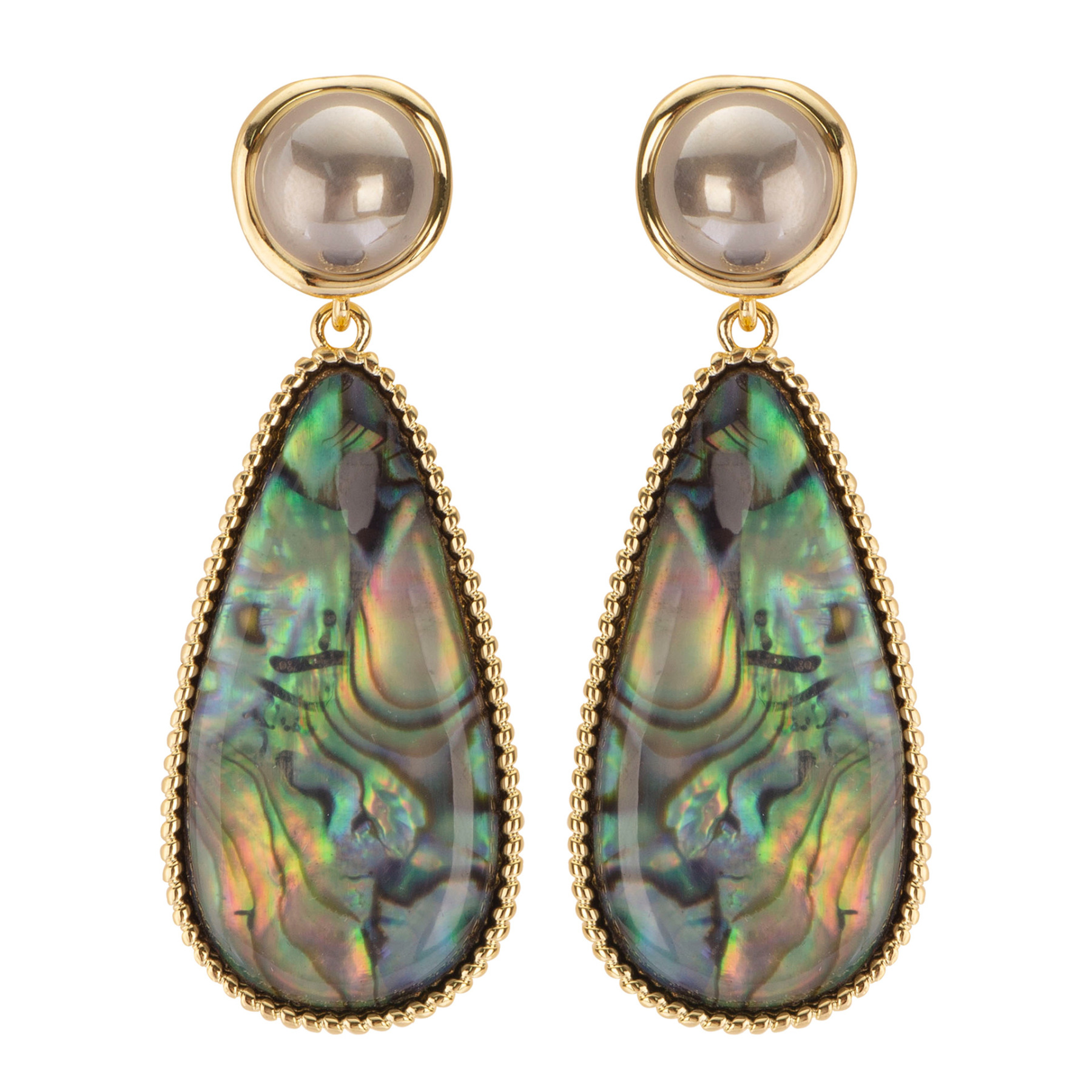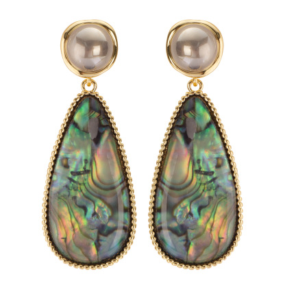 此款耳飾鑲嵌的是天然鮑魚貝殼,而非人工染色貝殼,由於其天然的特殊性,所以花紋色澤每個批次略有不同,請知悉哦