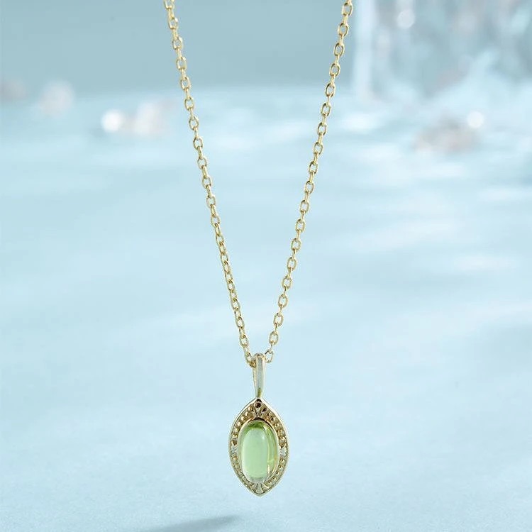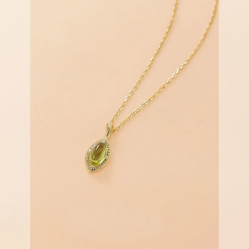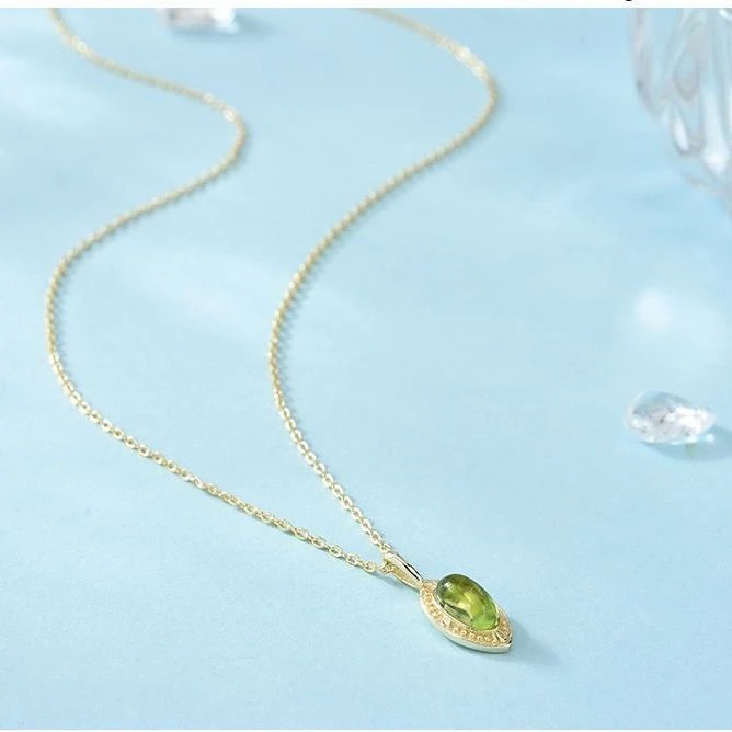 森綠|橄欖綠幸運之石項鍊|45公分|925銀