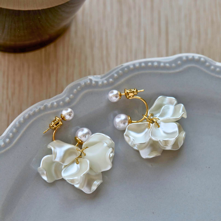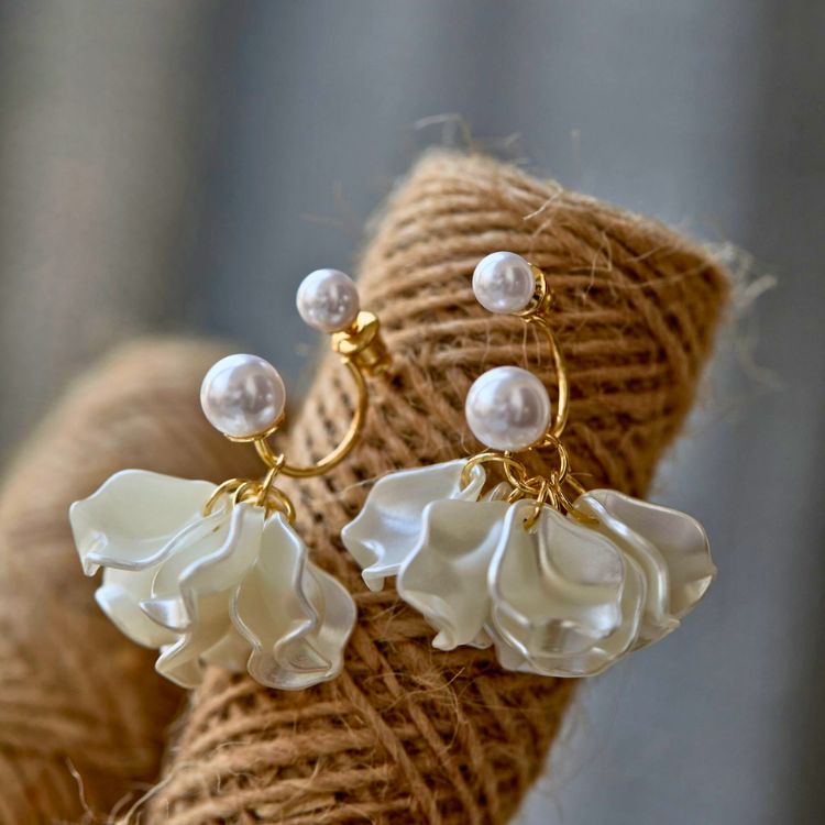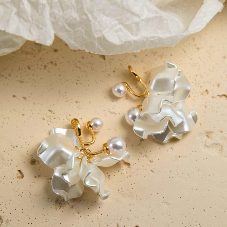 「霧靄花海」法式珍珠花朵耳釘|兩戴式森系仙女風