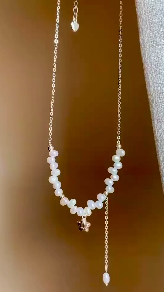 天然淡水珍珠,以橢圓形錯落串聯,像剛收割的麥穗,隨性中藏著豐收的喜悅。
