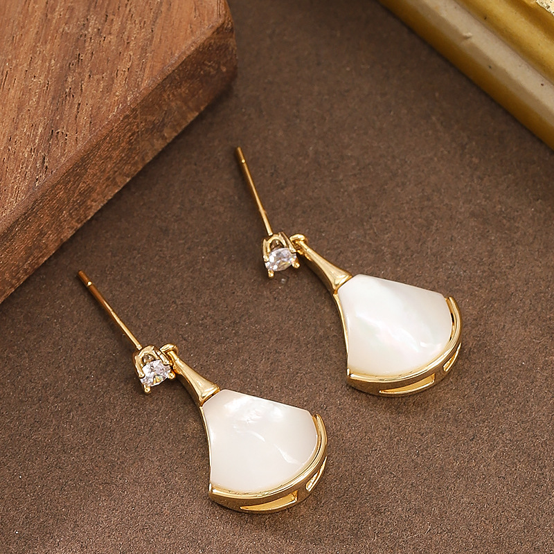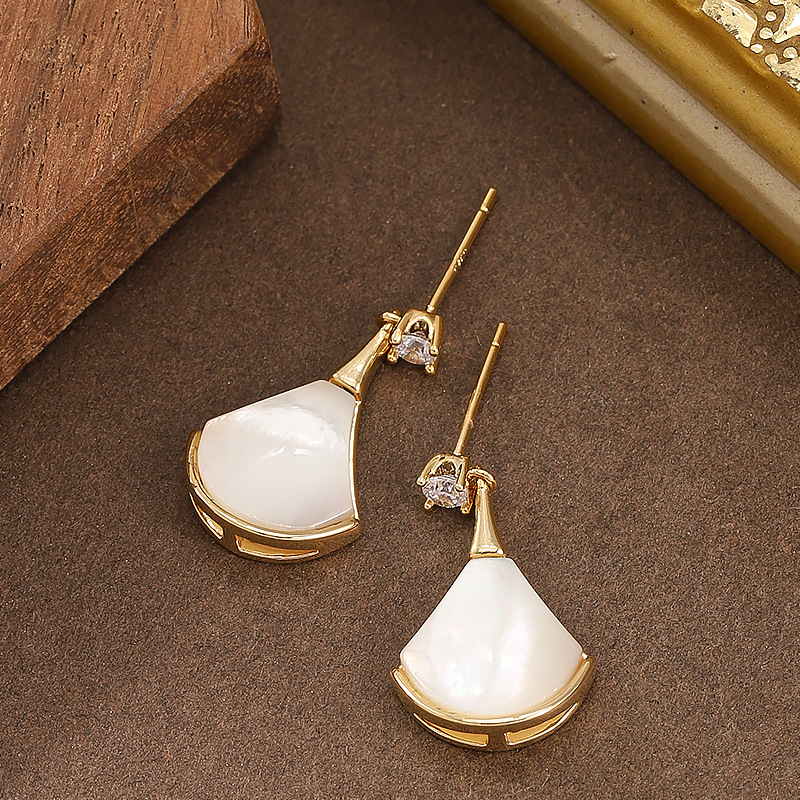S925银针甜美精致极简风天然贝母扇形小裙子耳环女高级感百搭耳饰