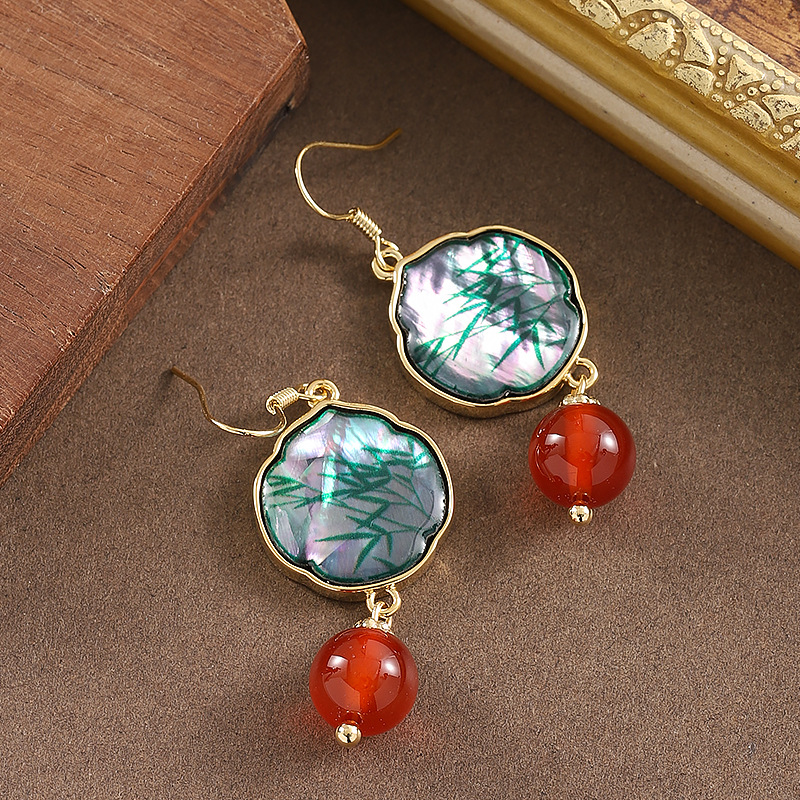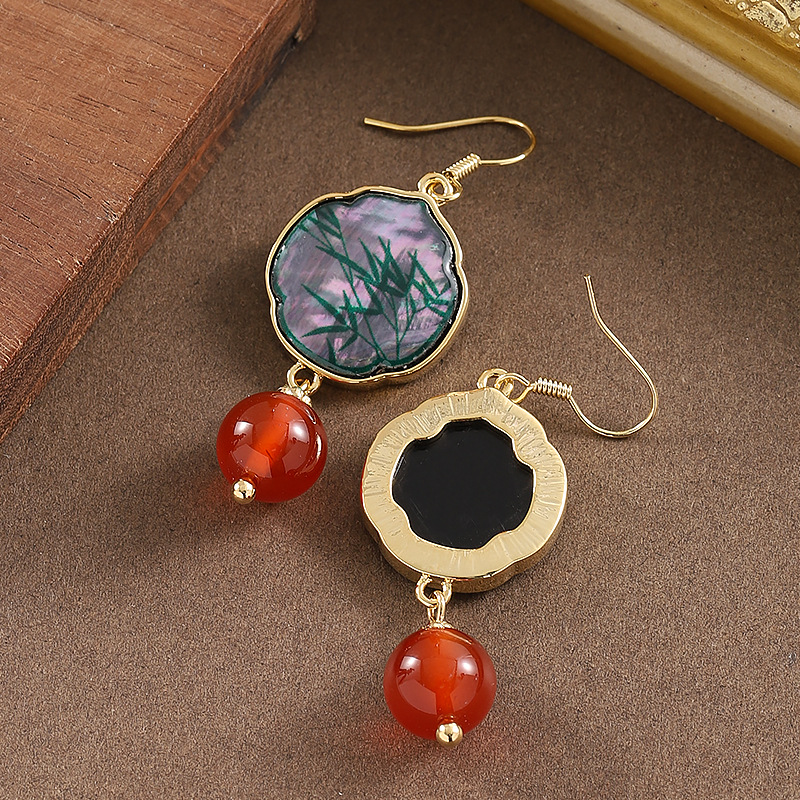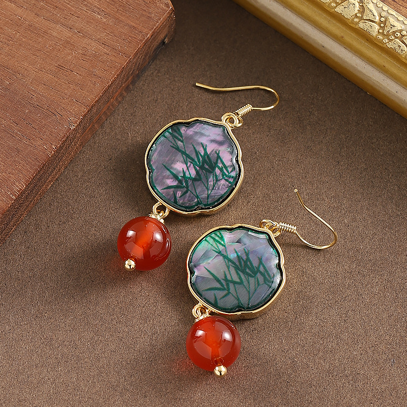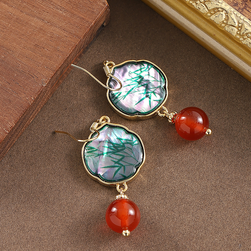 vintage古風貝殼瑪瑙流蘇耳環輕奢優雅高級感顯臉瘦耳飾女